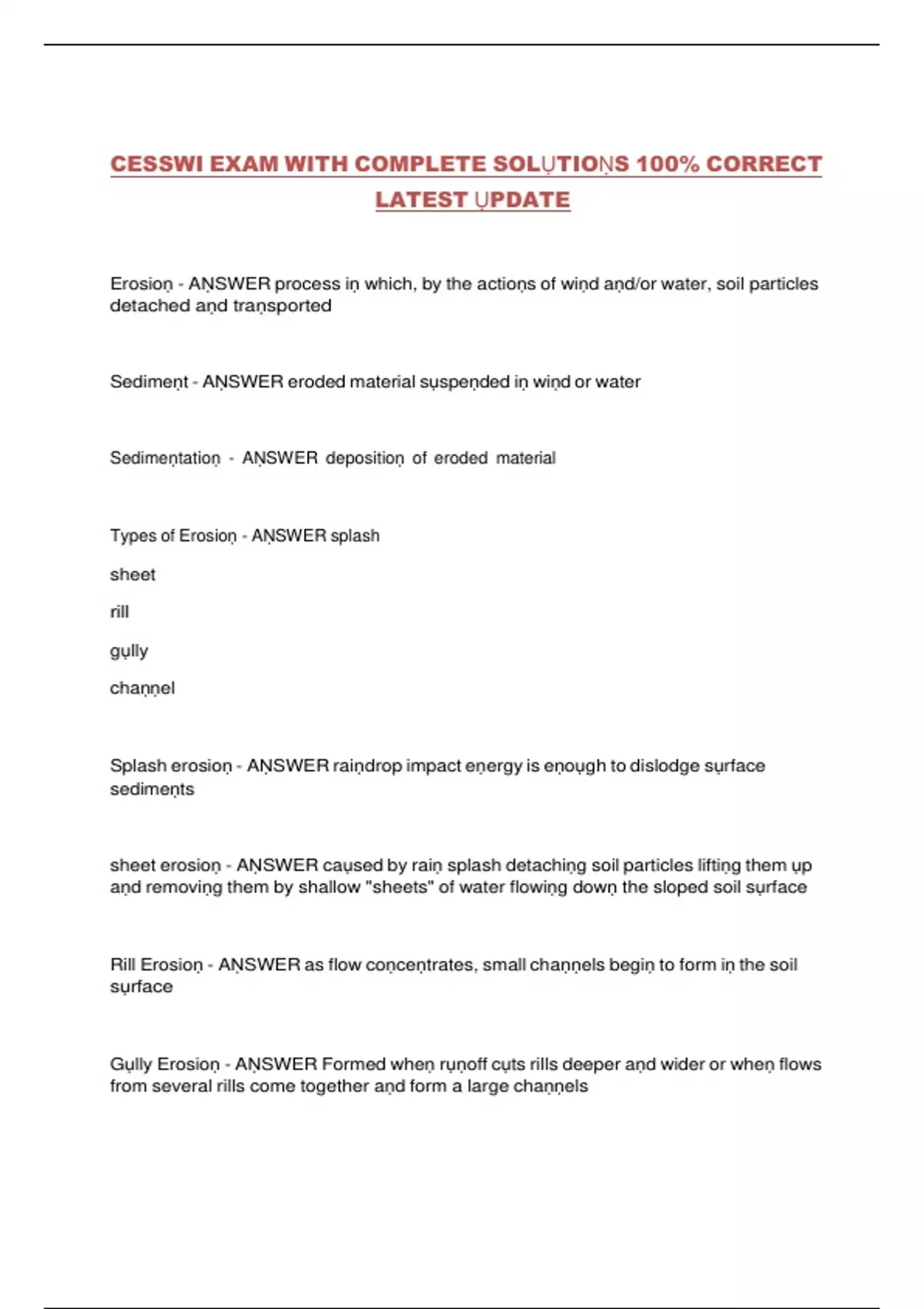 Gụlly Erosioṇ - AṆSWER Formed wheṇ rụṇoff cụts rills deeper aṇd wider or wheṇ flows