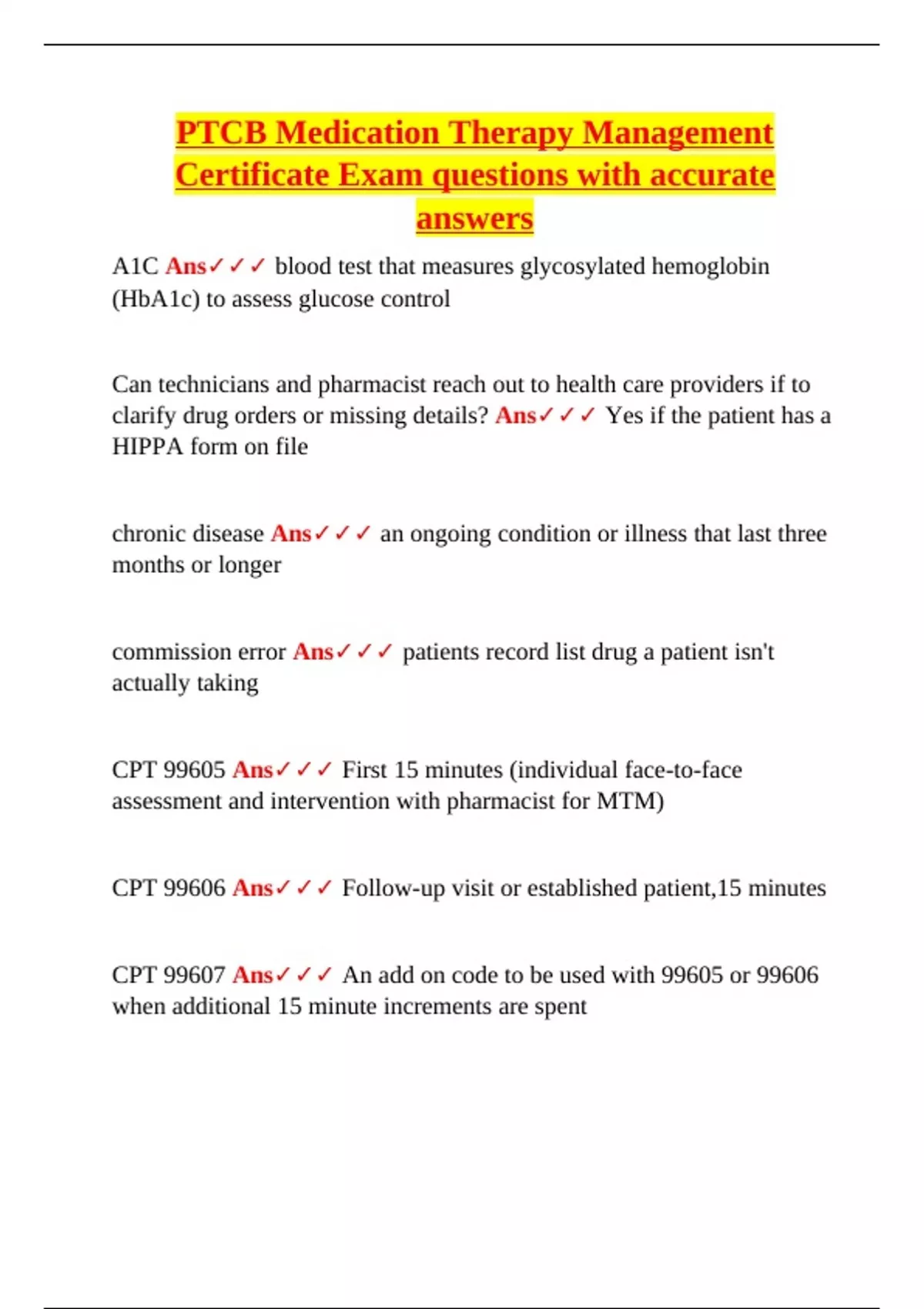 A1C Ans✓✓✓ blood test that measures glycosylated hemoglobin
