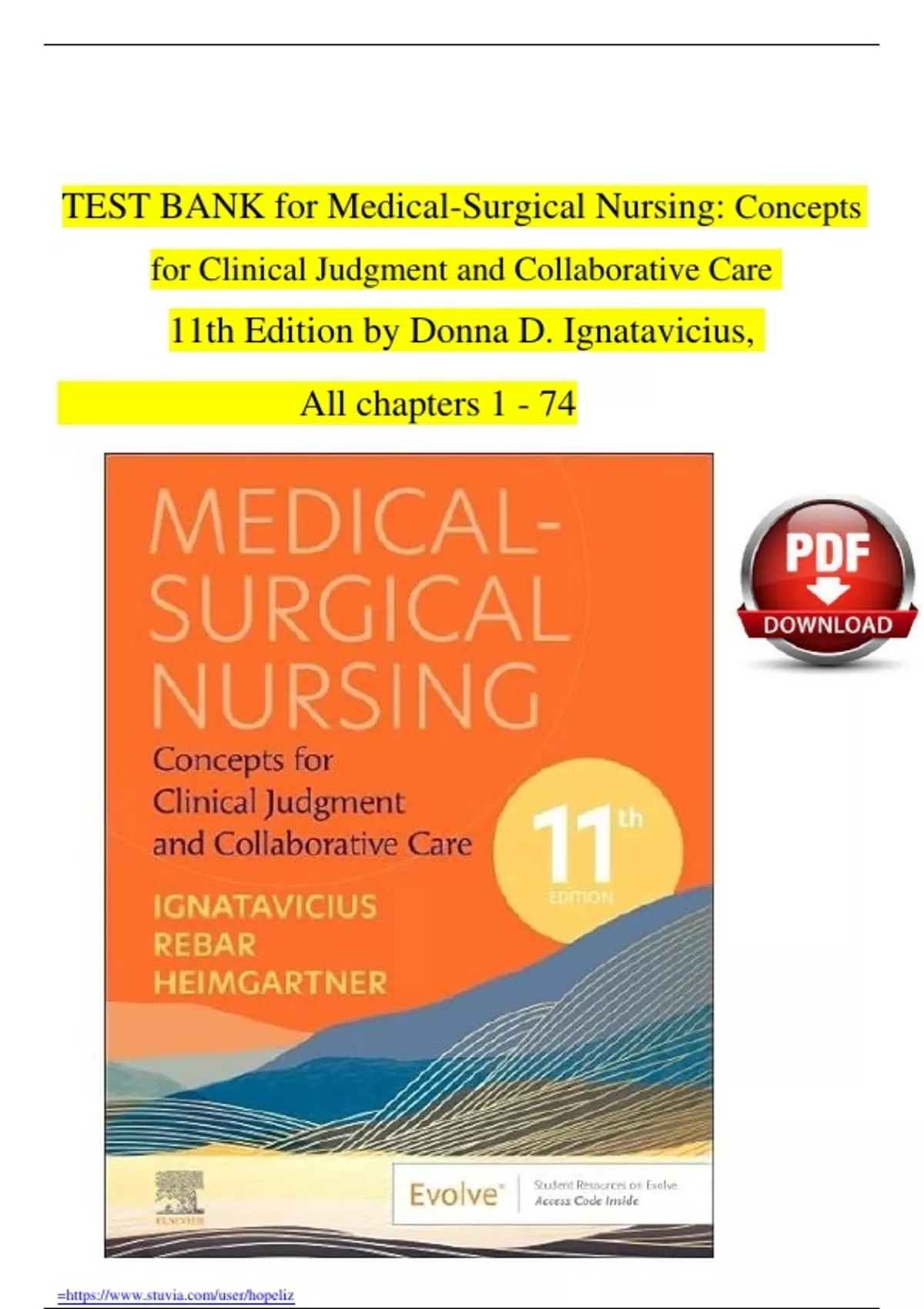 Medical-Surgical Nursing: Concepts. for Clinical Judgment and Collaborative Care. 11th Edition by Donna D. Ignatavicius