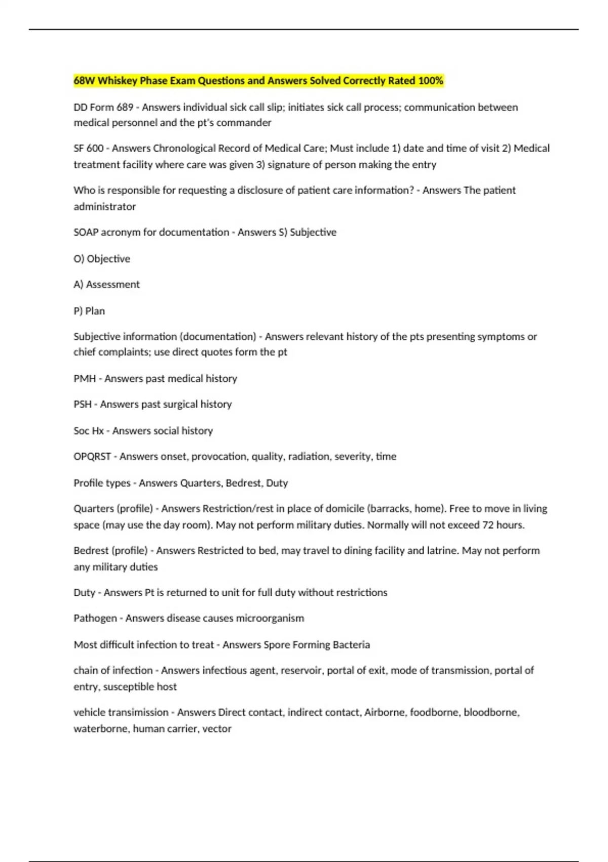 Bedrest (profile) - Answers Restricted to bed, may travel to dining facility and latrine. May not perform