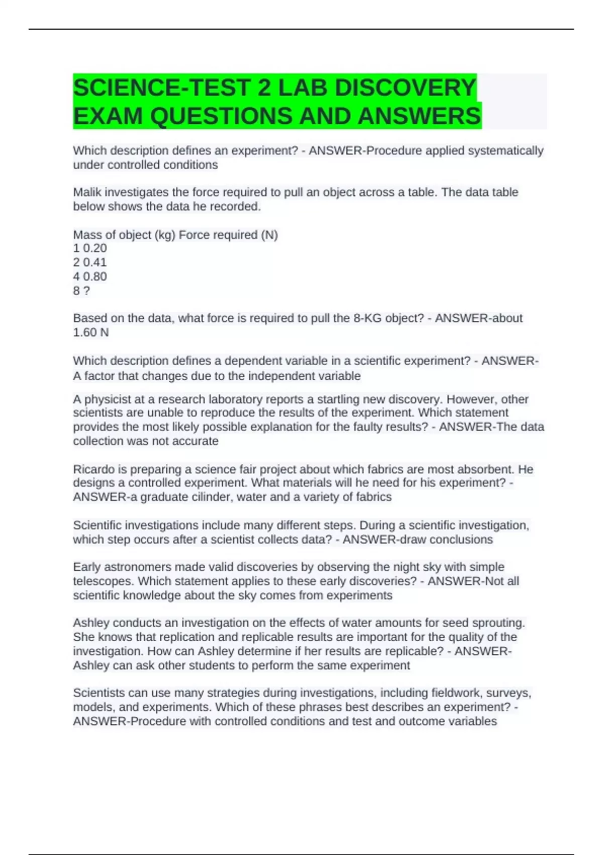 SCIENCE-TEST 2 LAB DISCOVERY