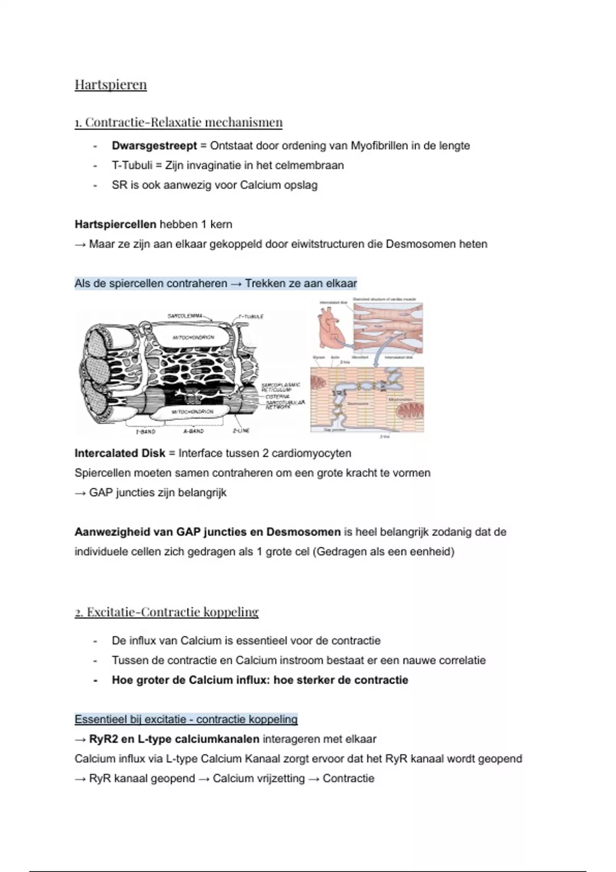 VOLLEDIGE Samenvatting Celfysiologie: Hartspieren (2de BMW, Vennekens)