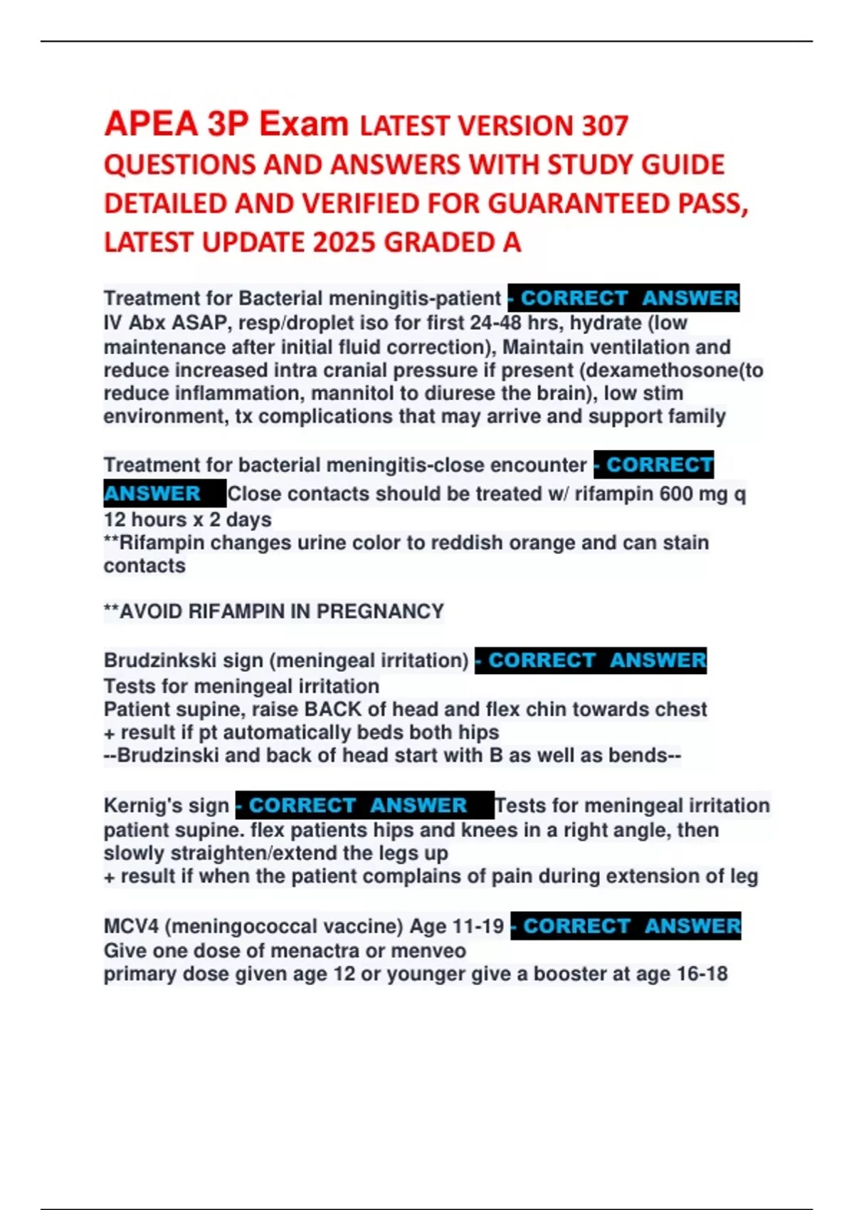 APEA 3P Exam LATEST VERSION 307 QUESTIONS AND ANSWERS WITH STUDY GUIDE DETAILED AND VERIFIED FOR GUARANTEED PASS, LATEST UPDATE 2025 GRADED A