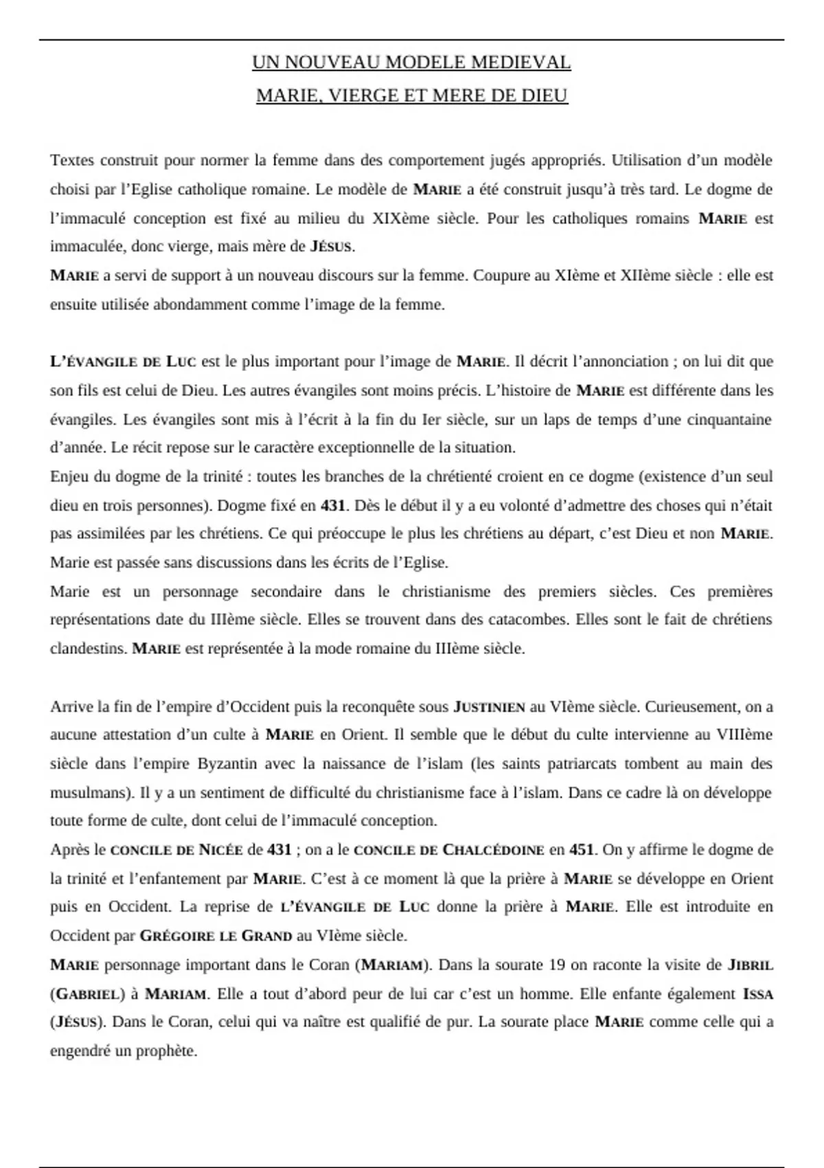 MARIE a servi de support à un nouveau discours sur la femme. Coupure au XIème et XIIème siècle : elle est