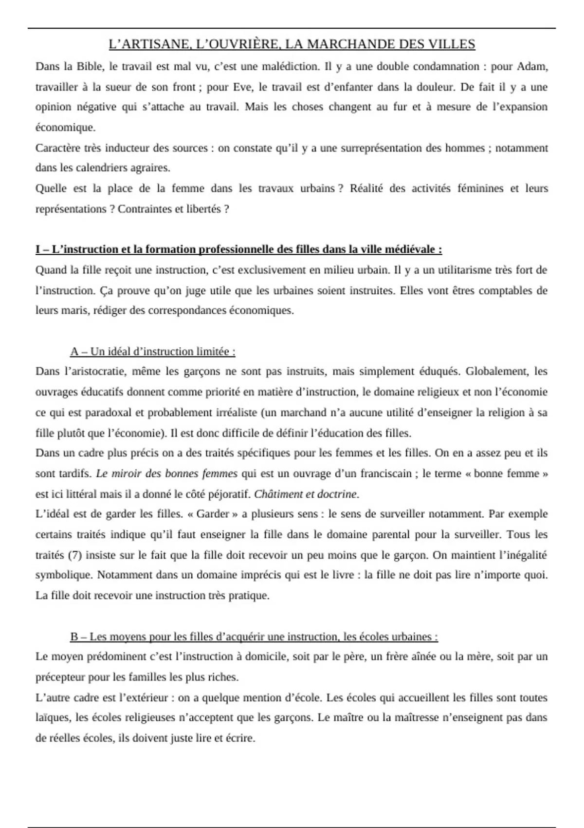 I – L’instruction et la formation professionnelle des filles dans la ville médiévale :