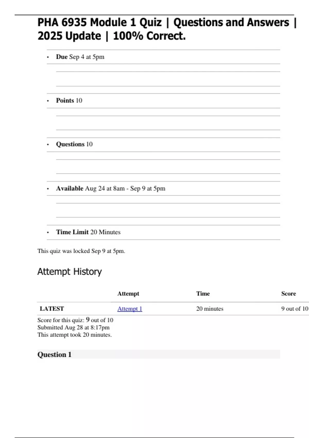 LATEST Attempt 1 20 minutes 9 out of 10