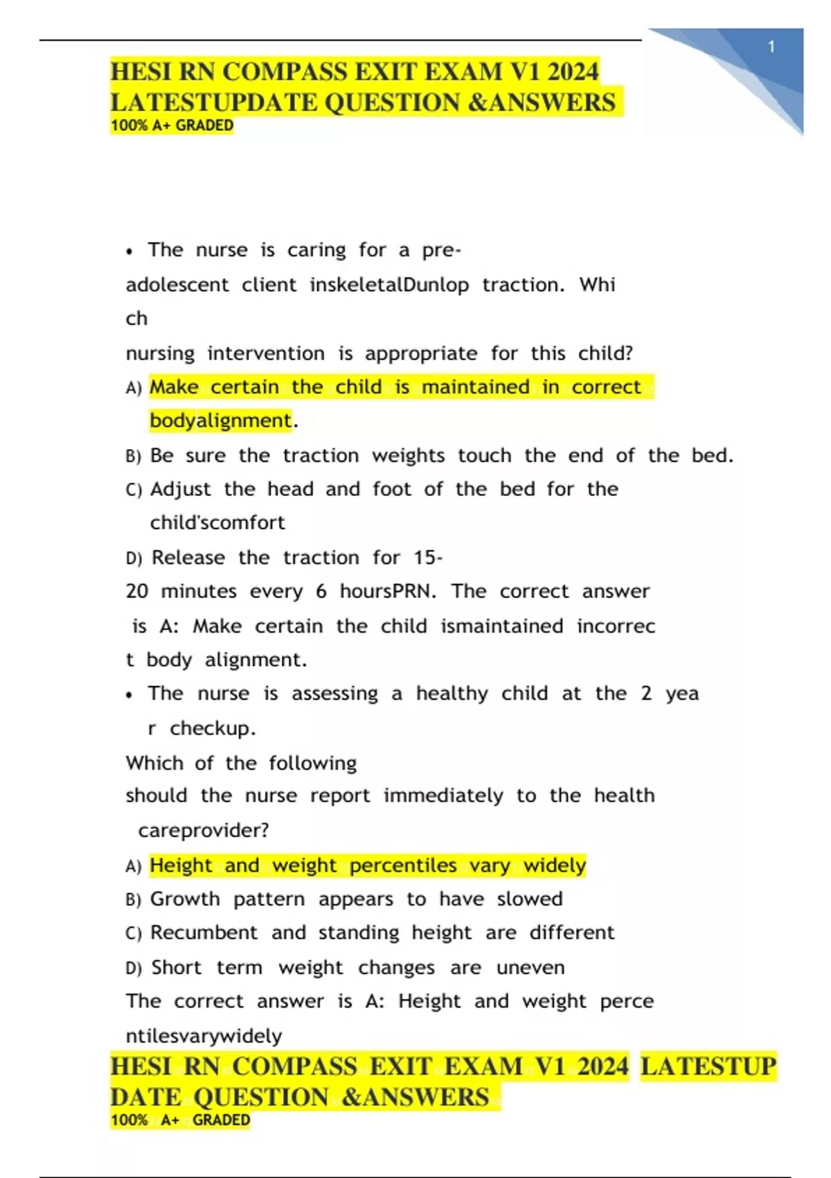 HESI RN COMPASS EXIT EXAM V1 2024 LATESTUPDATE QUESTION &ANSWERS 100% A+ GRADED