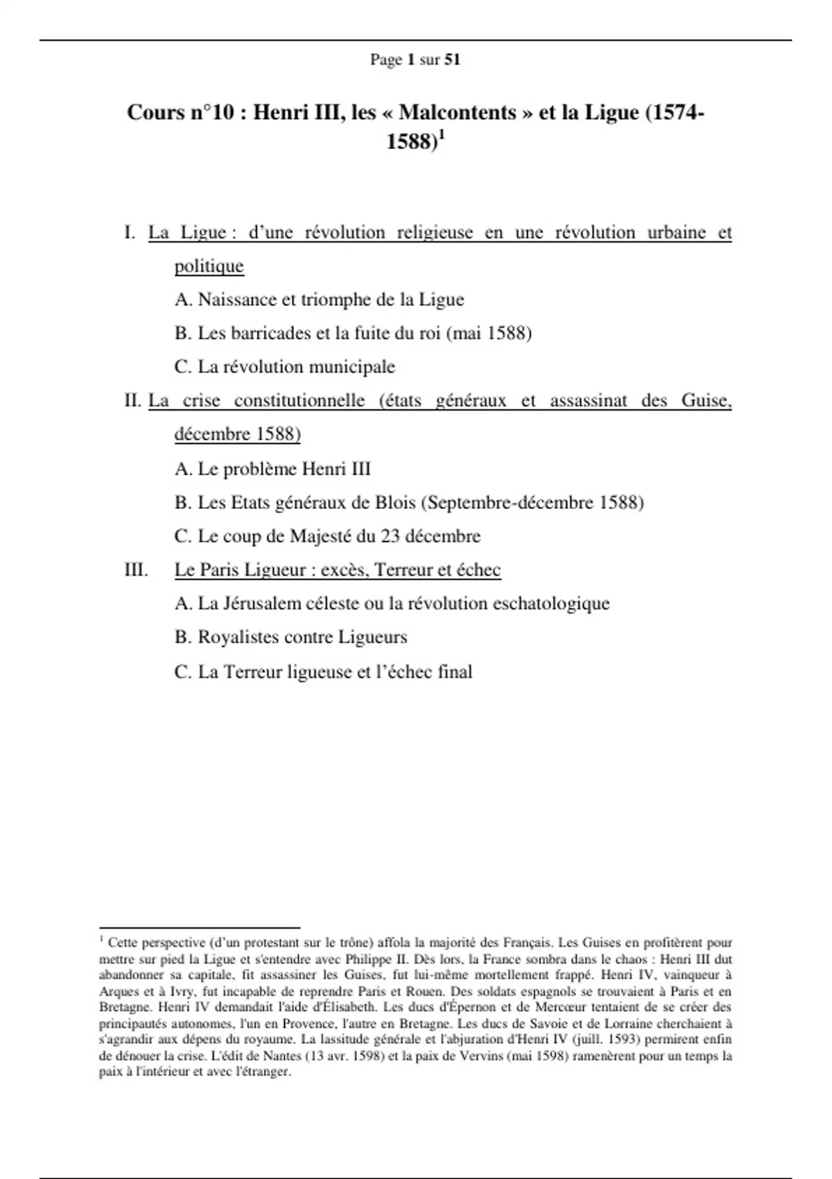 Cours n°10 : Henri III, les « Malcontents » et la Ligue (1574-