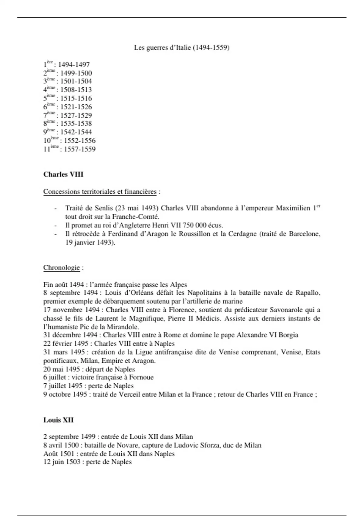 Résumé La chronologie des guerres d'Italie