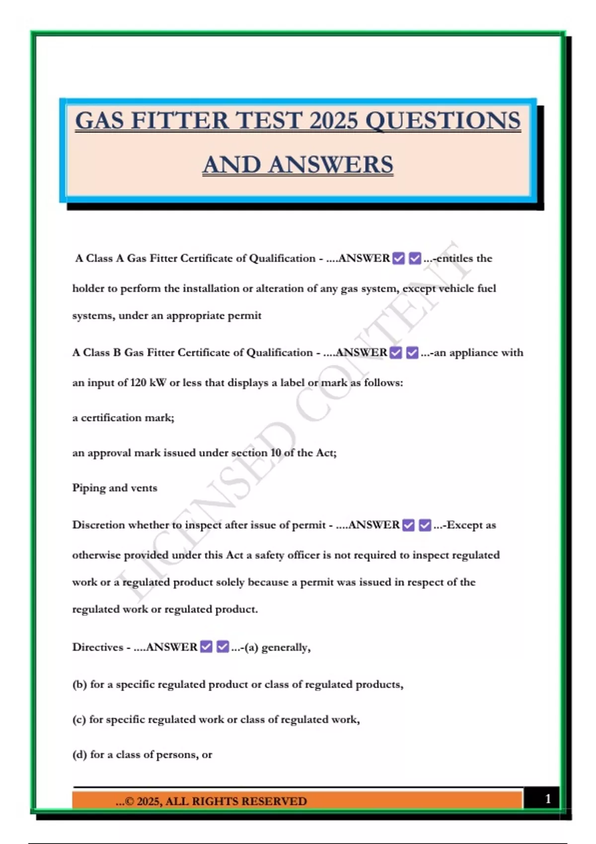 A Class A Gas Fitter Certificate of Qualification - ....ANSWER ...-entitles the