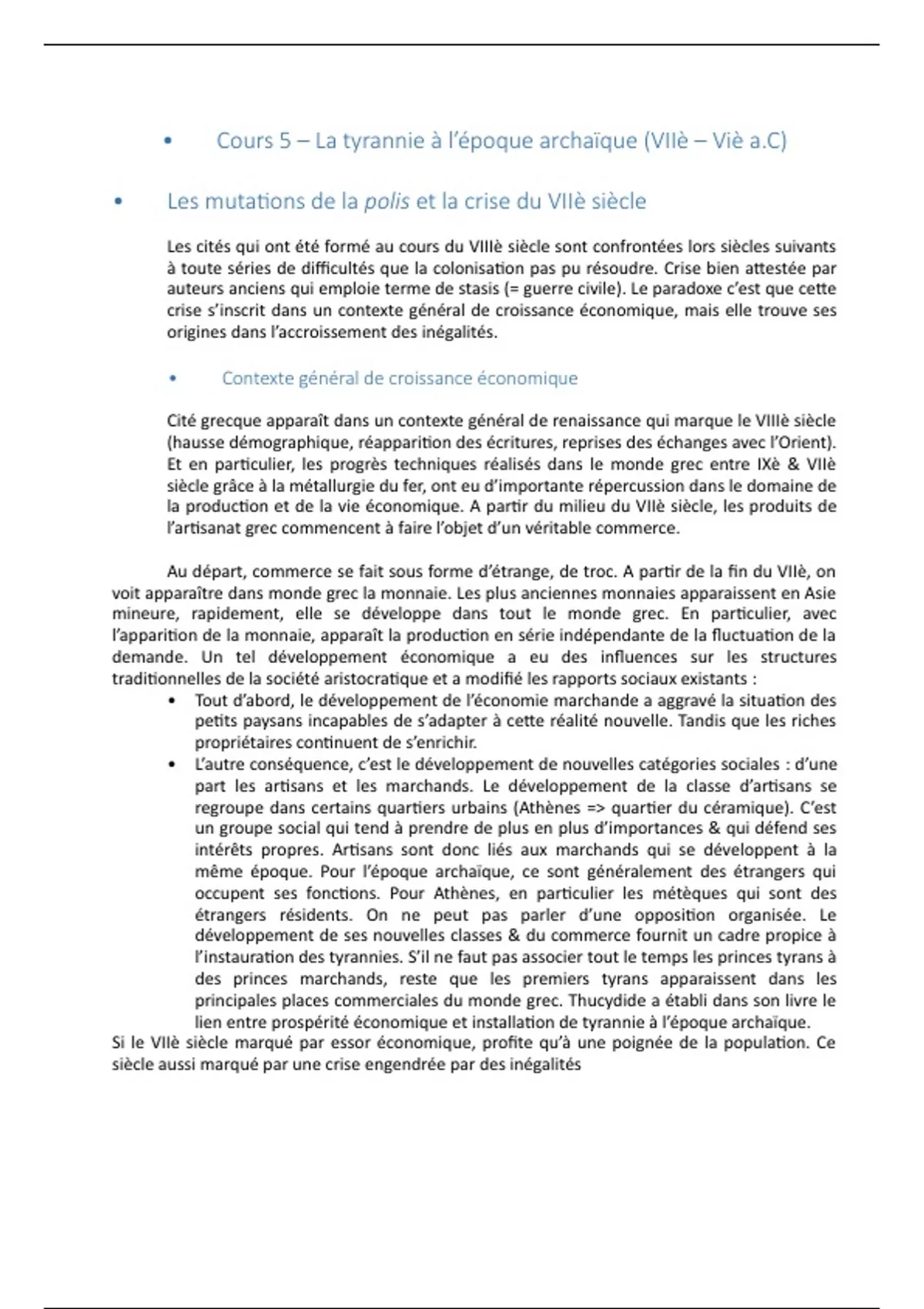 • Cours 5 – La tyrannie à l’époque archaïque (VIIè – Viè a.C)