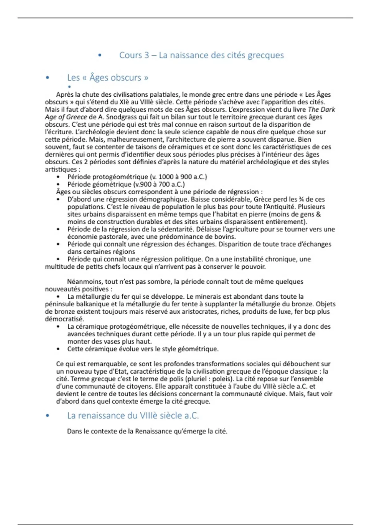 • Cours 3 – La naissance des cités grecques