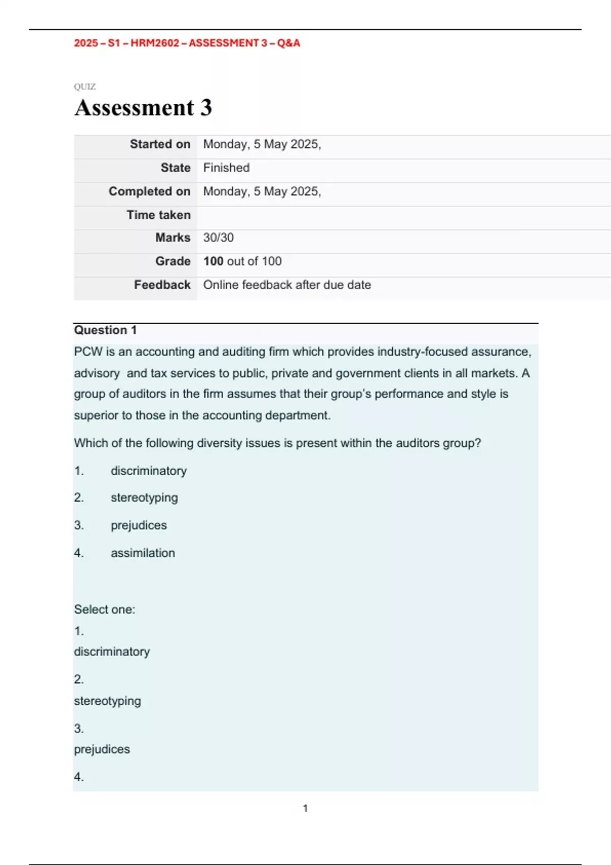 2025 – S1 – HRM2602 – ASSESSMENT 3 – Q&A