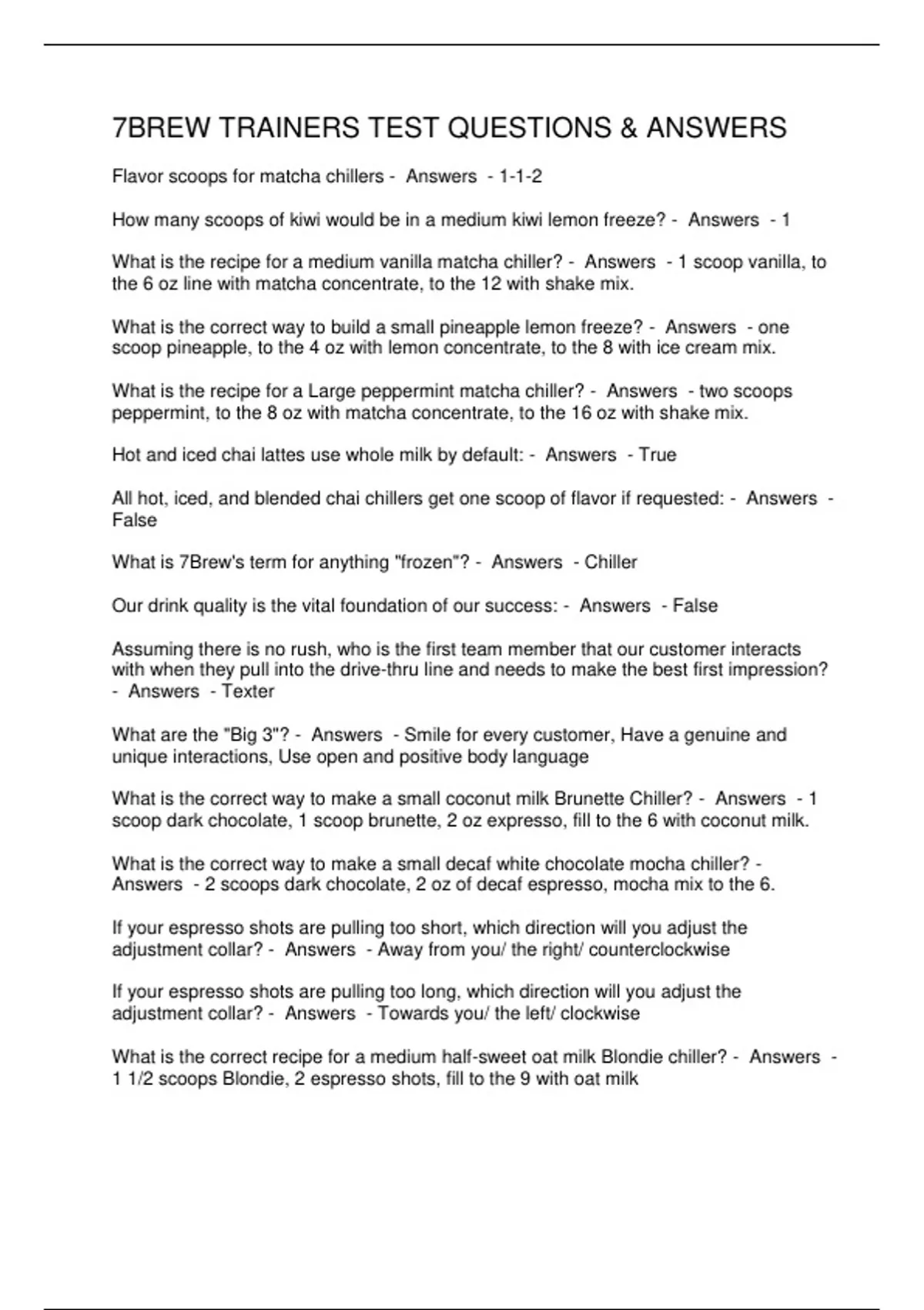 7BREW TRAINERS TEST QUESTIONS & ANSWERS