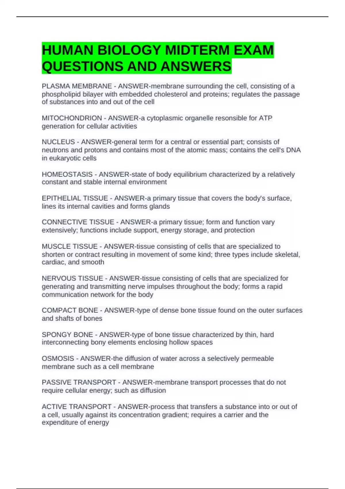 HUMAN BIOLOGY MIDTERM EXAM