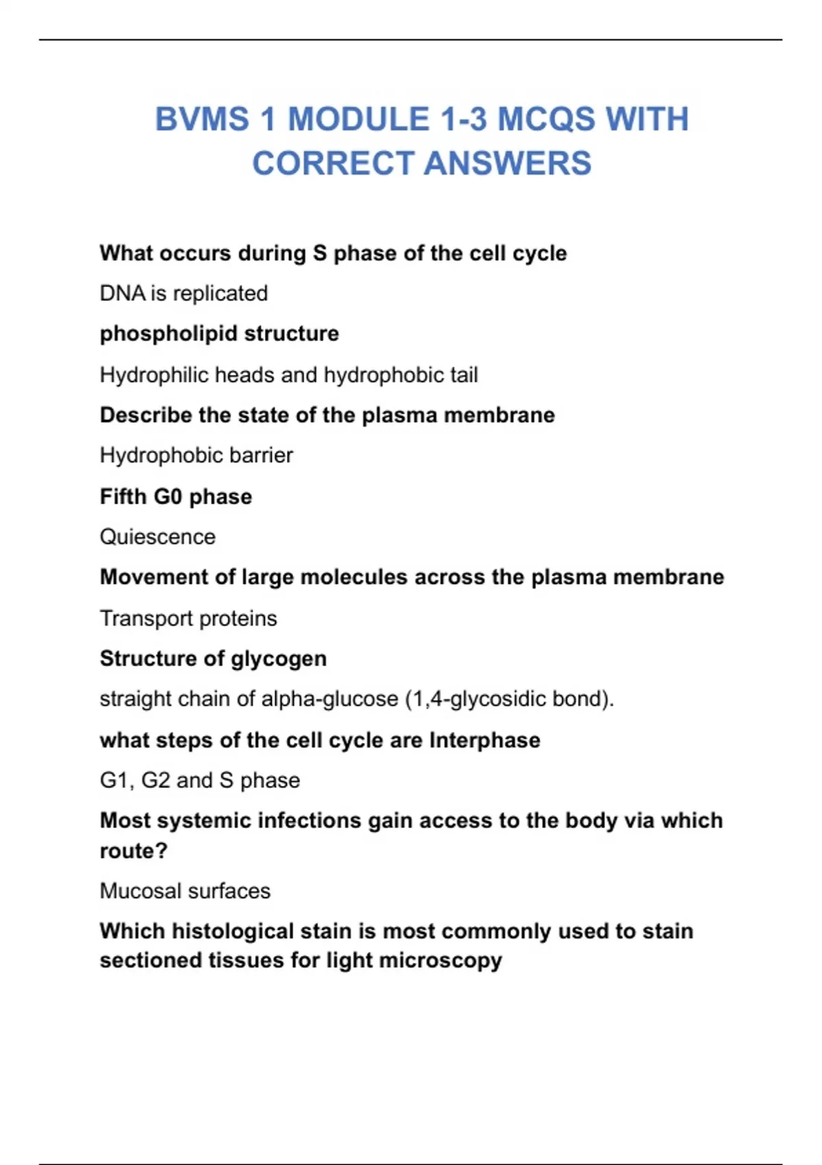 BVMS 1 MODULE 1-3 MCQS WITH CORRECT ANSWERS