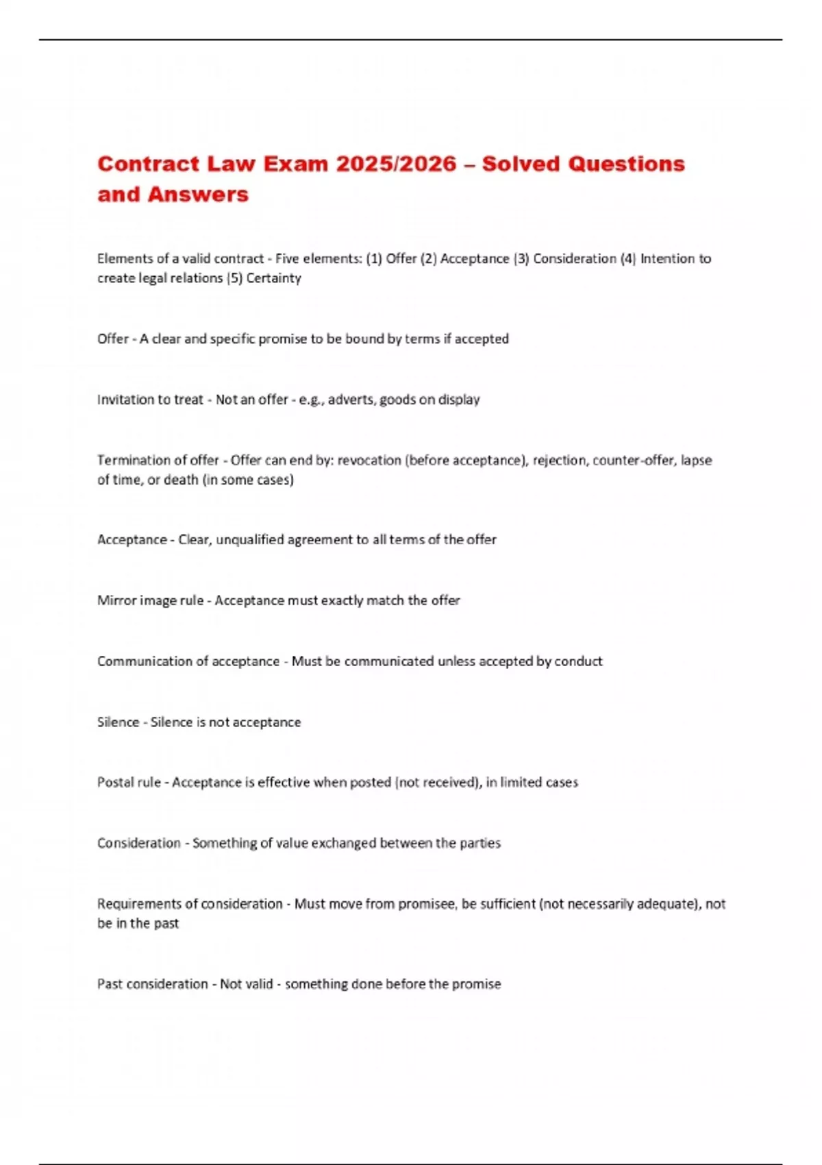 Contract Law Exam 2025/2026 – Solved Questions and Answers