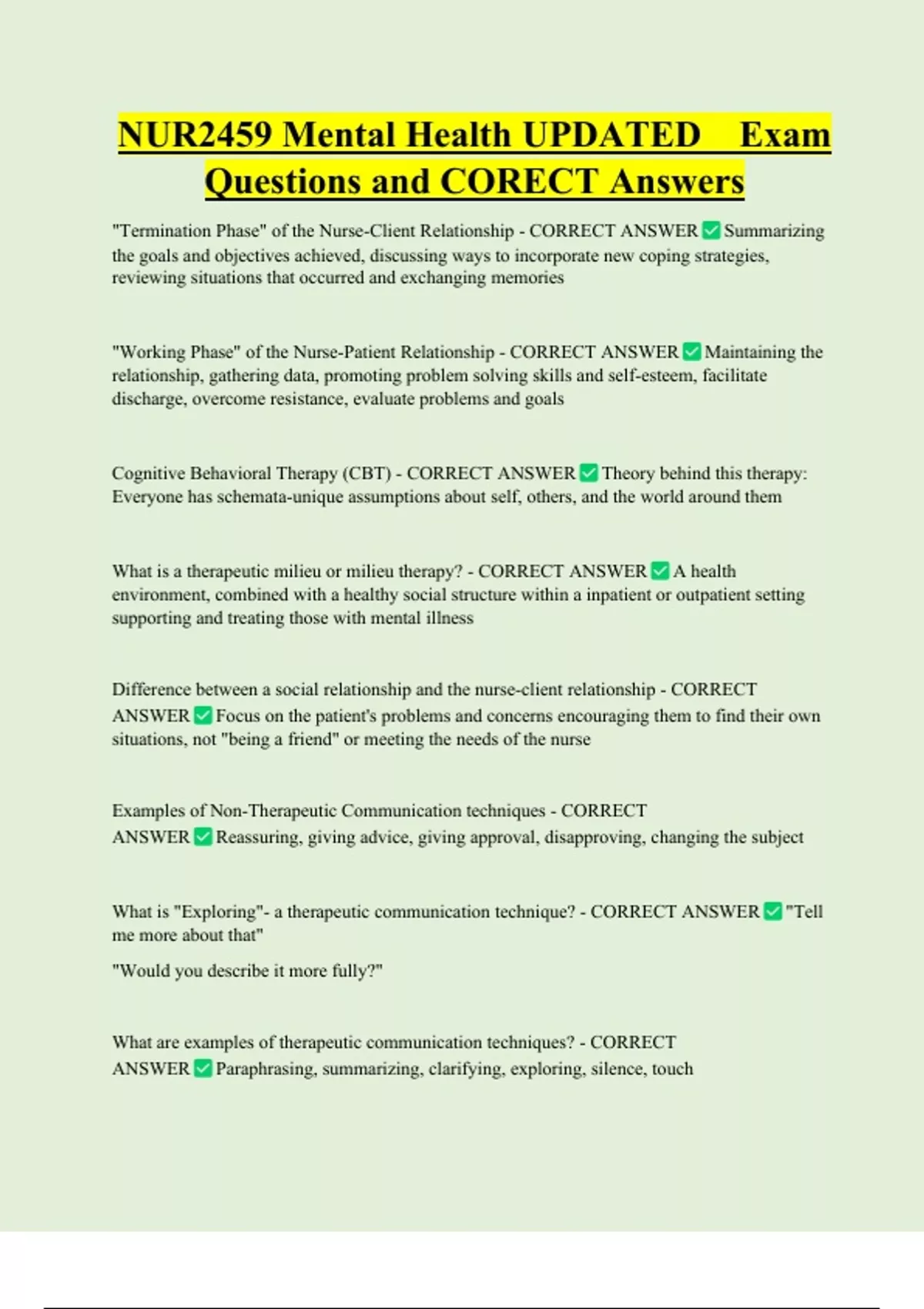 Questions and CORECT Answers