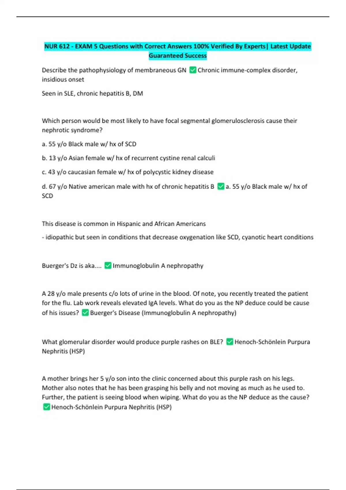 NUR 612 - EXAM 5 Questions with Correct Answers 100% Verified By Experts| Latest Update Guaranteed Success