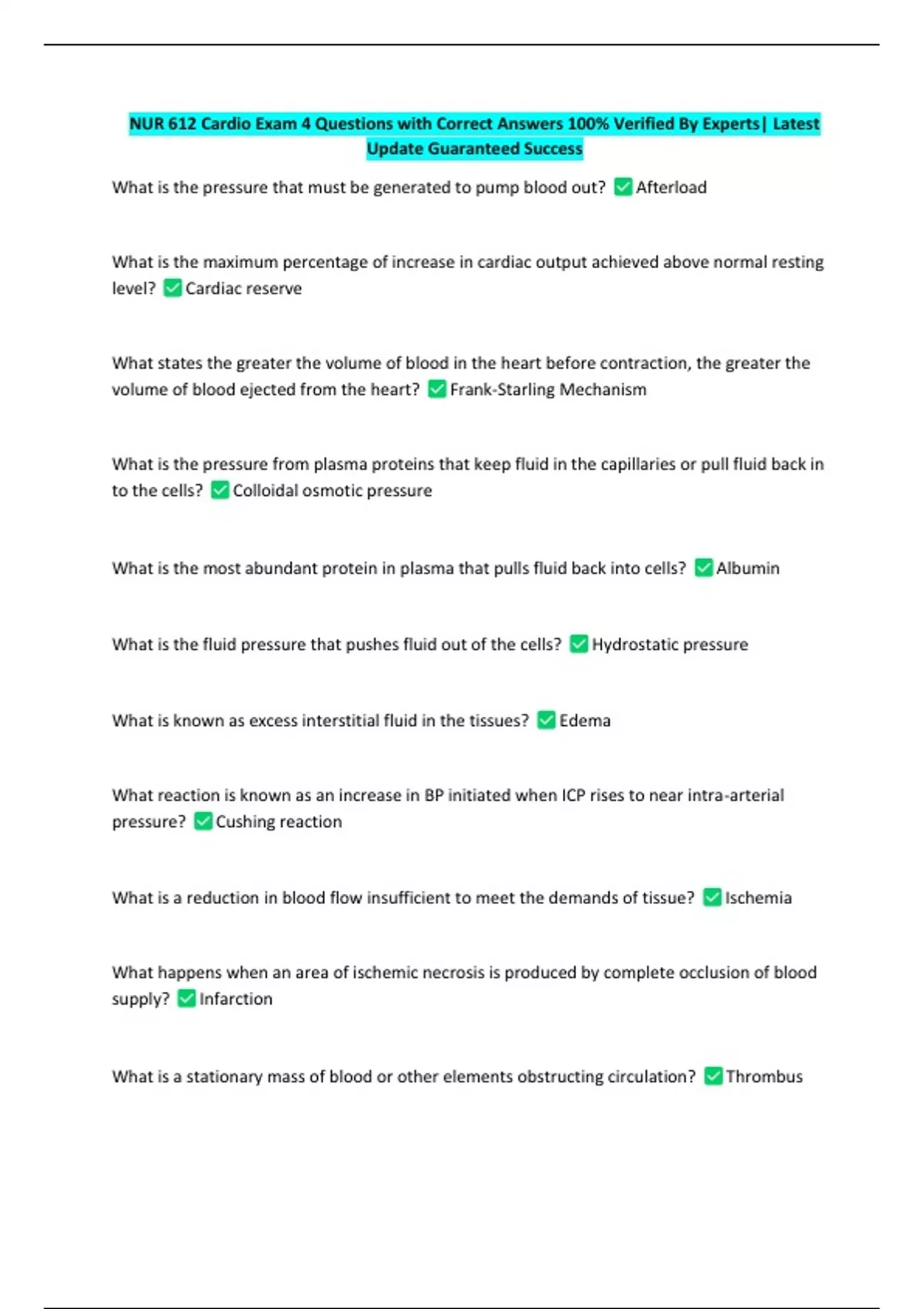 NUR 612 Cardio Exam 4 Questions with Correct Answers 100% Verified By Experts| Latest