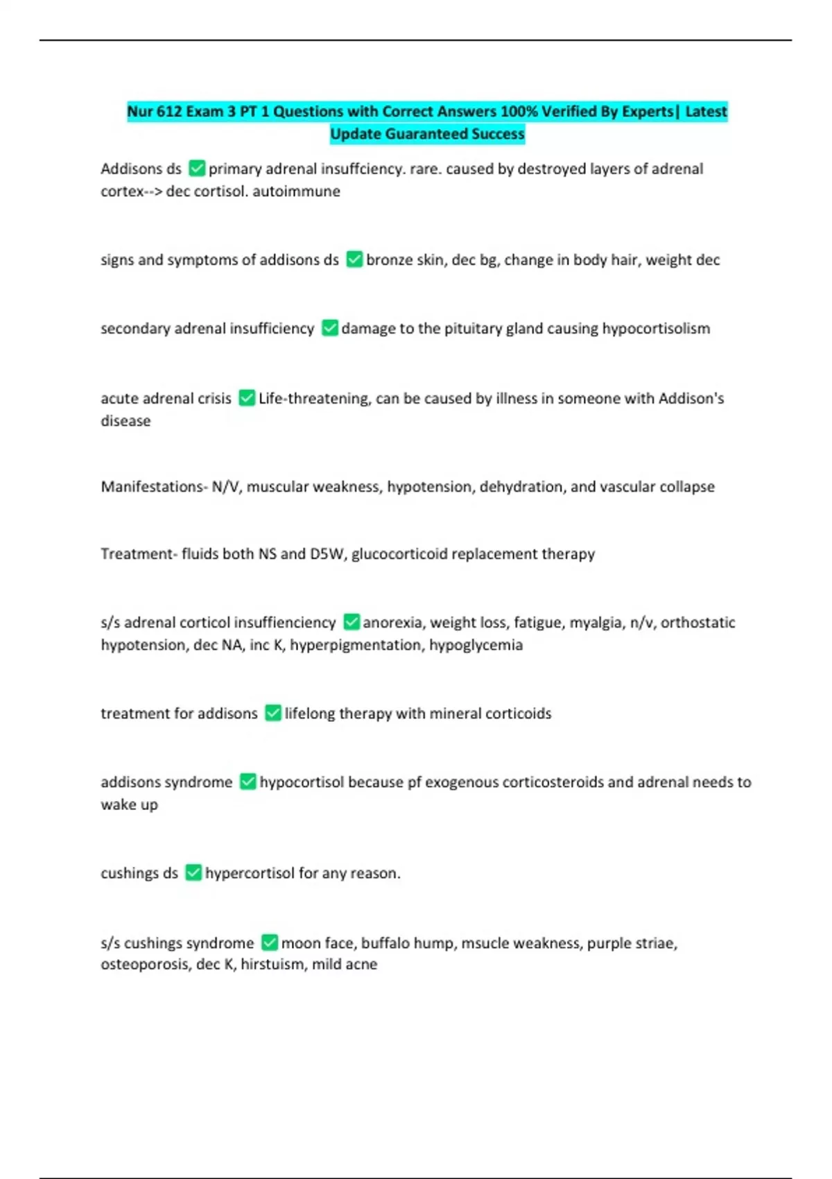 Nur 612 Exam 3 PT 1 Questions with Correct Answers 100% Verified By Experts| Latest