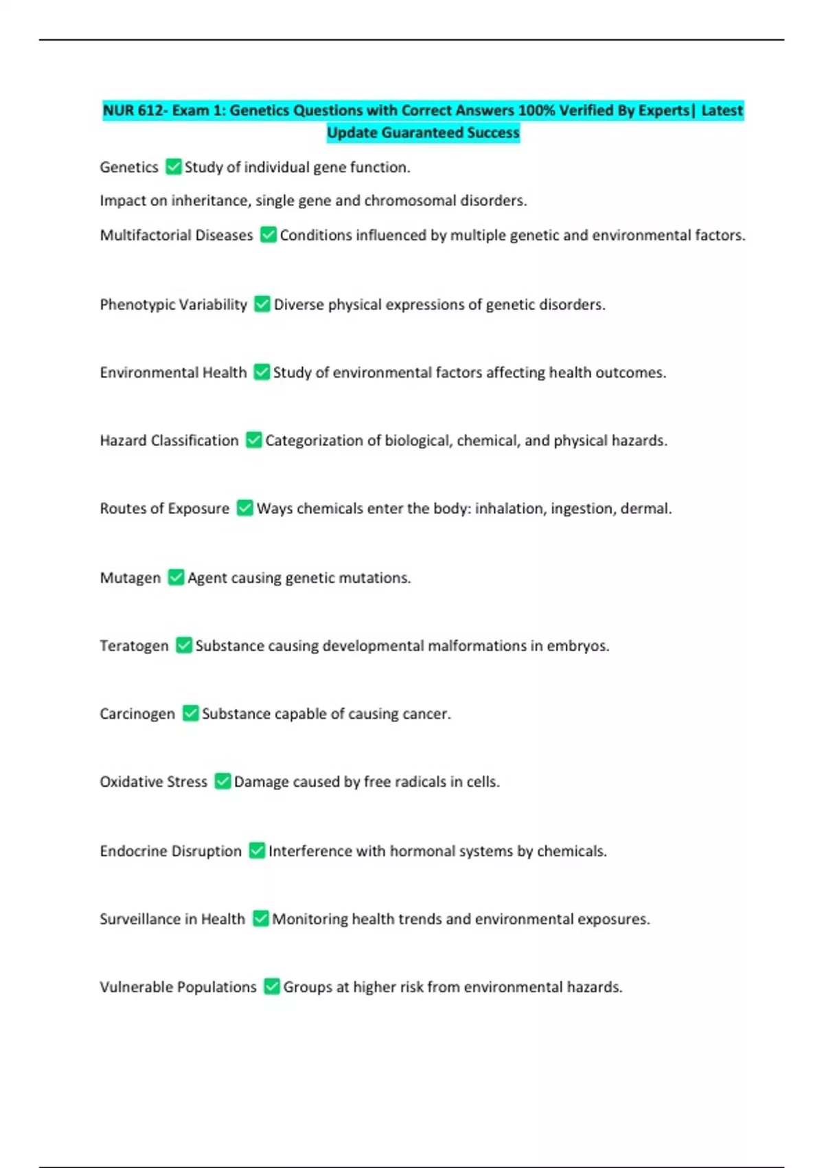 NUR 612- Exam 1: Genetics Questions with Correct Answers 100% Verified By Experts| Latest