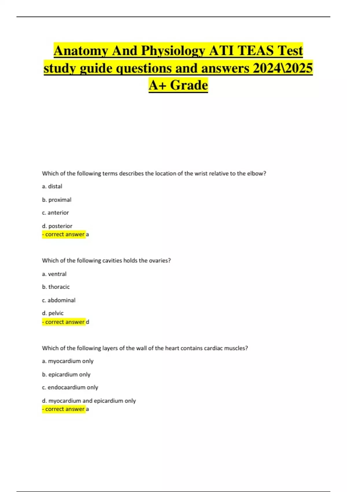 - correct answer a