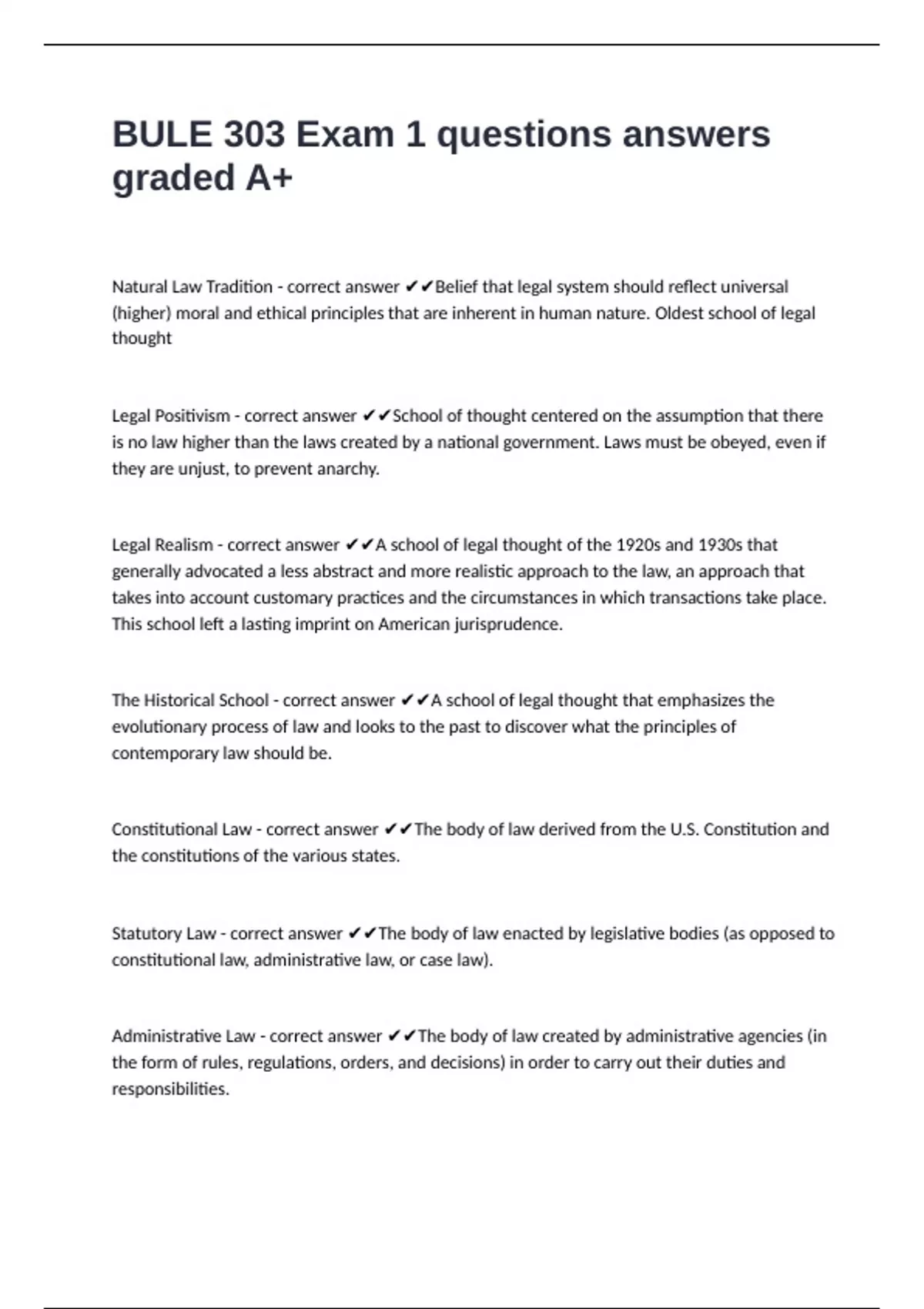 BULE 303 Exam 1 questions answers graded A+