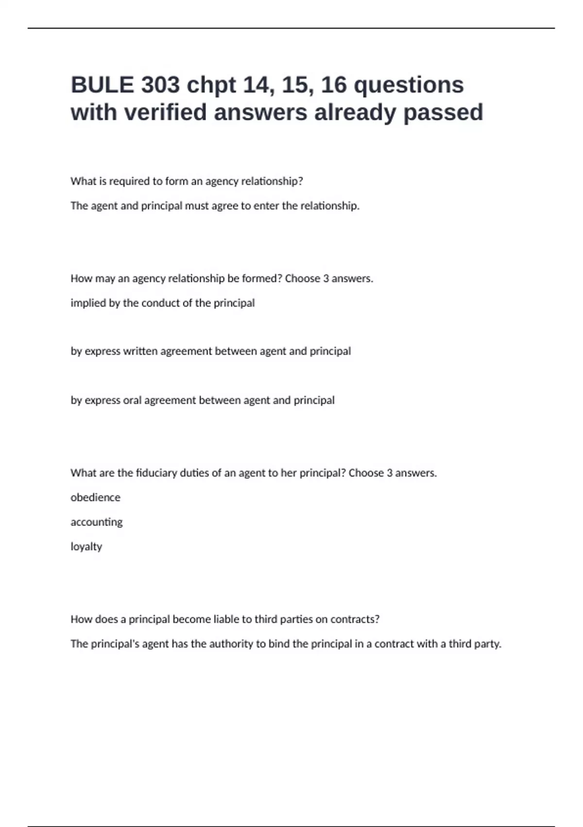 BULE 303 chpt 14, 15, 16 questions with verified answers already passed