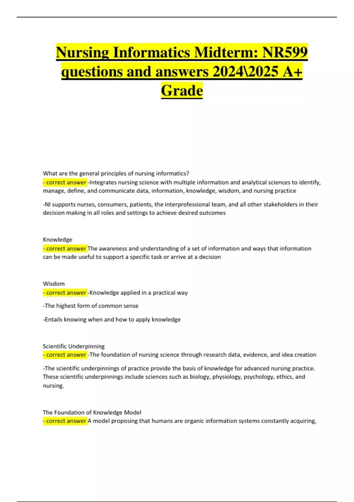 - correct answer -Integrates nursing science with multiple information and analytical sciences to identify,