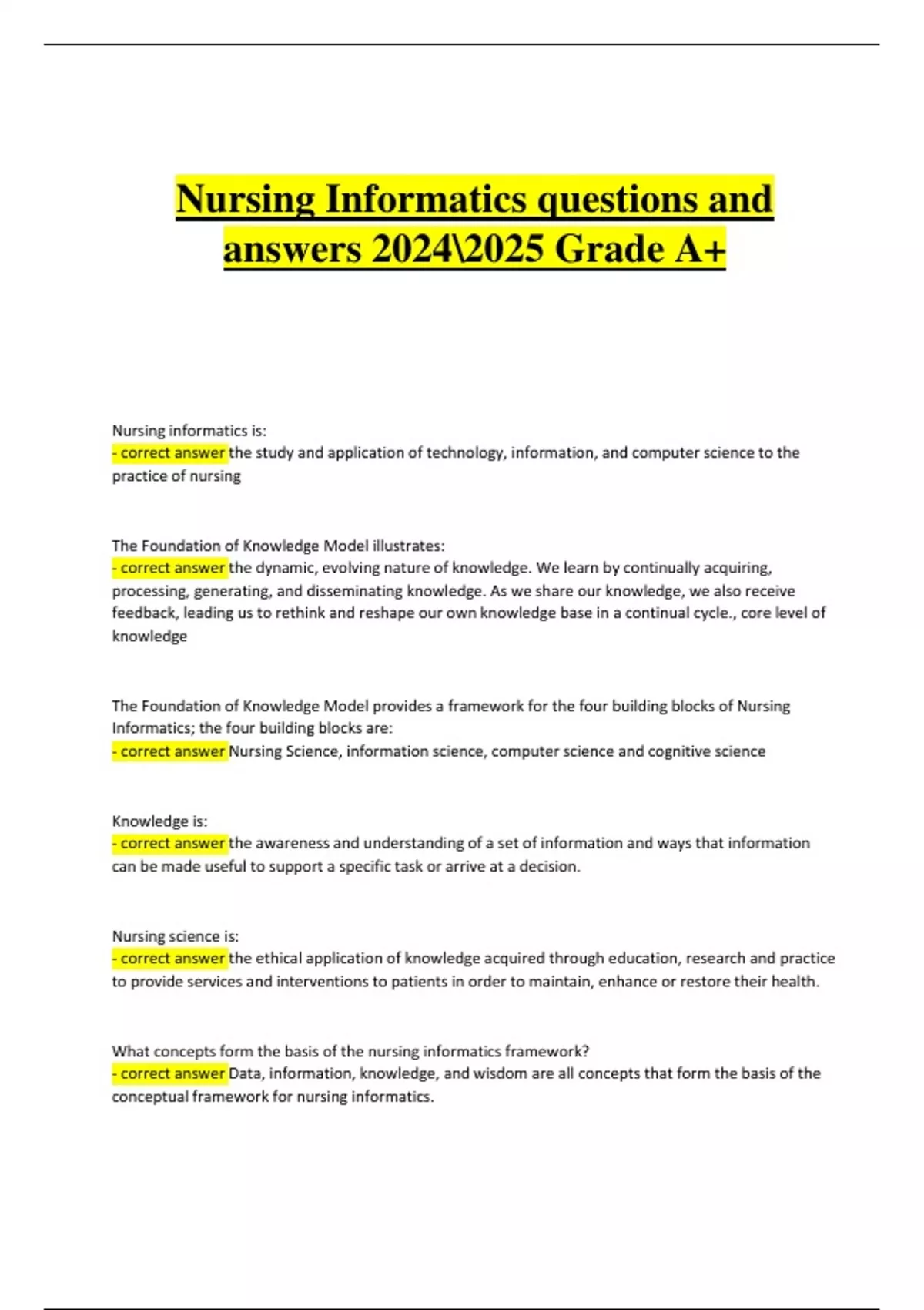 - correct answer Information