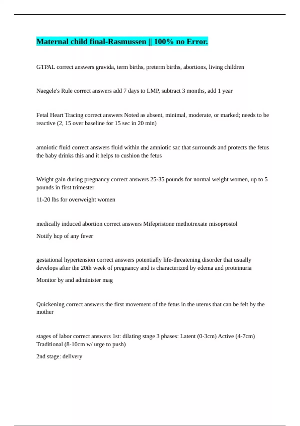 Weight gain during pregnancy correct answers 25-35 pounds for normal weight women, up to 5