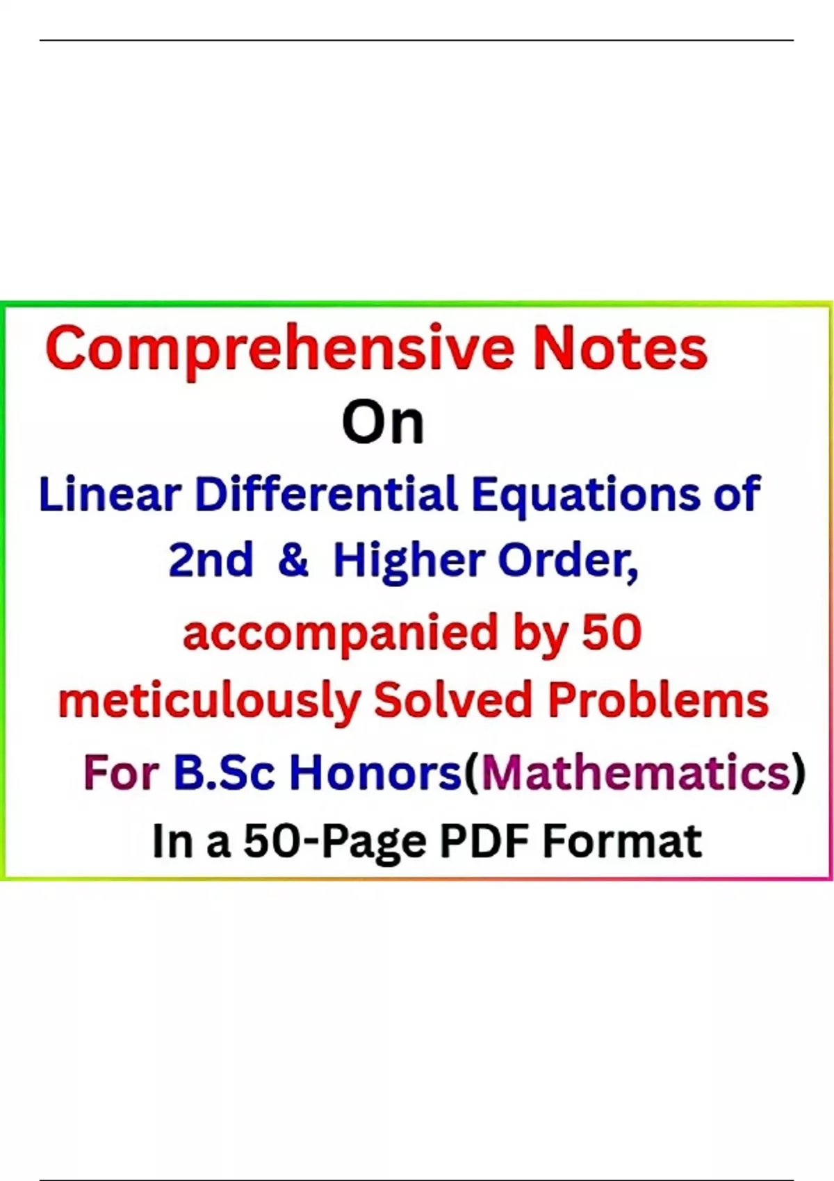 Providing Comprehensive Notes On Linear Differential Equations Of 2nd and Higher Order accompanied by 50 Meticulously Solved Problems In a Concise 50-Page PDF Document.