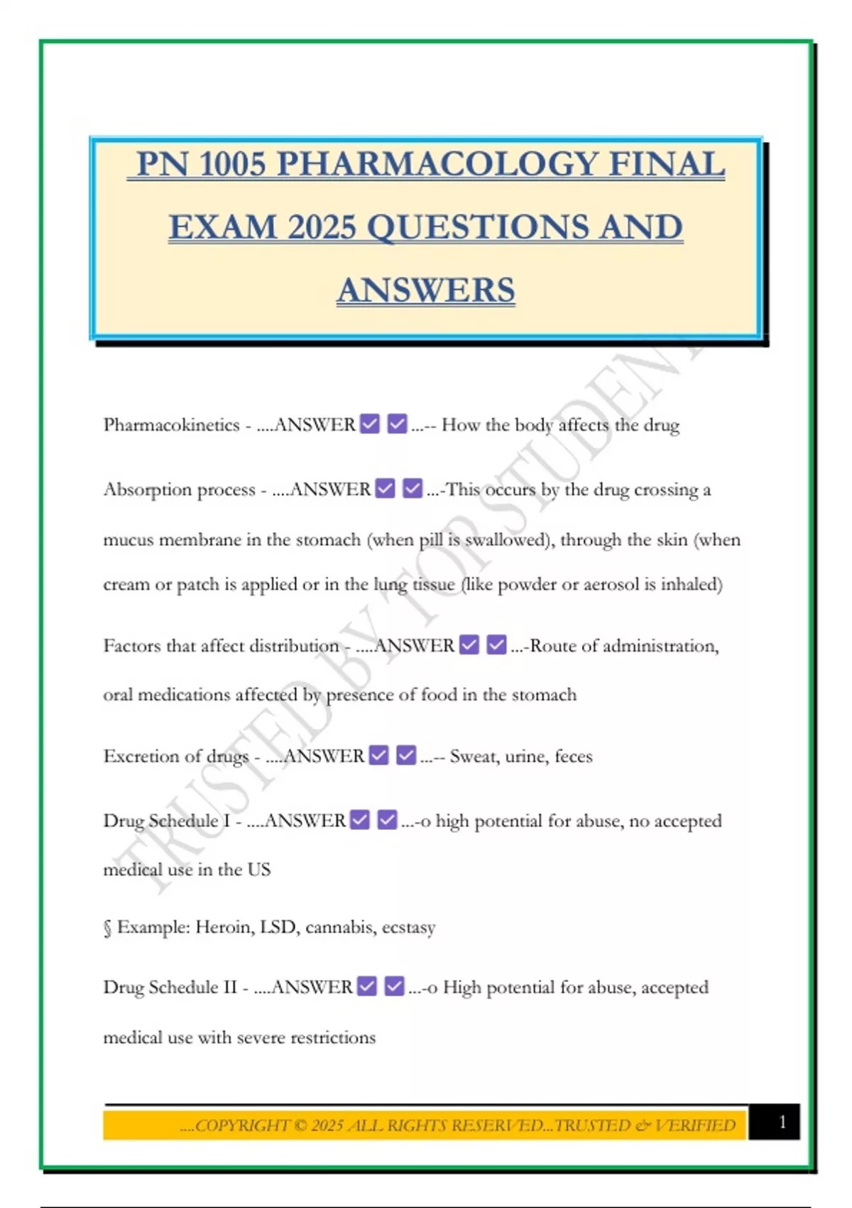 PN 1005 PHARMACOLOGY FINAL