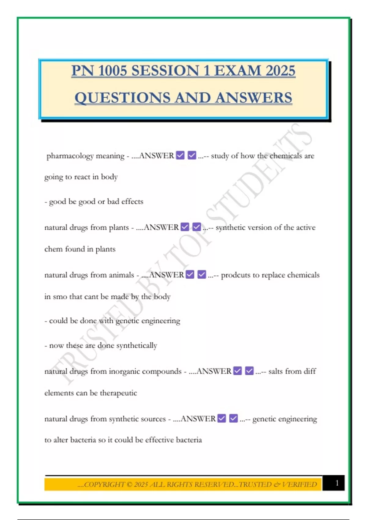 PN 1005 SESSION 1 EXAM 2025 QUESTIONS AND ANSWERS