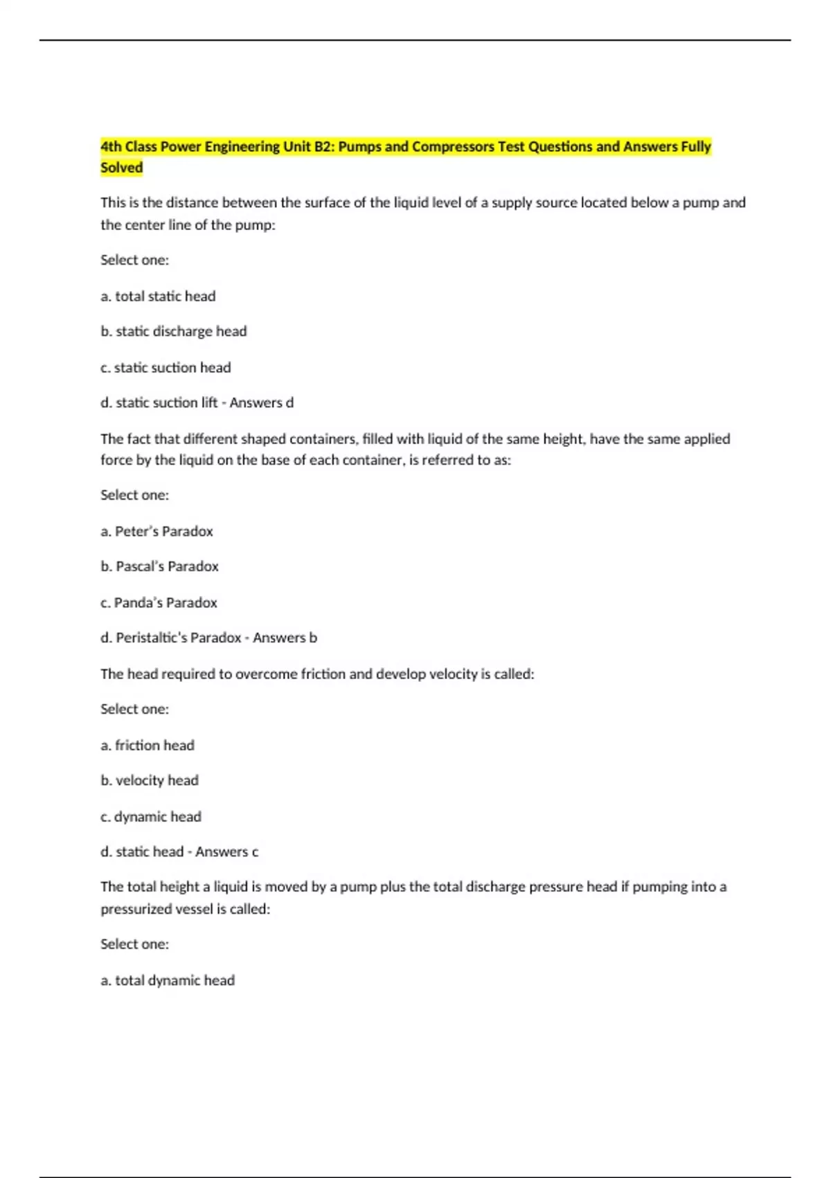 The absolute pressure of a fluid, measured at the inlet of a pump is known as: