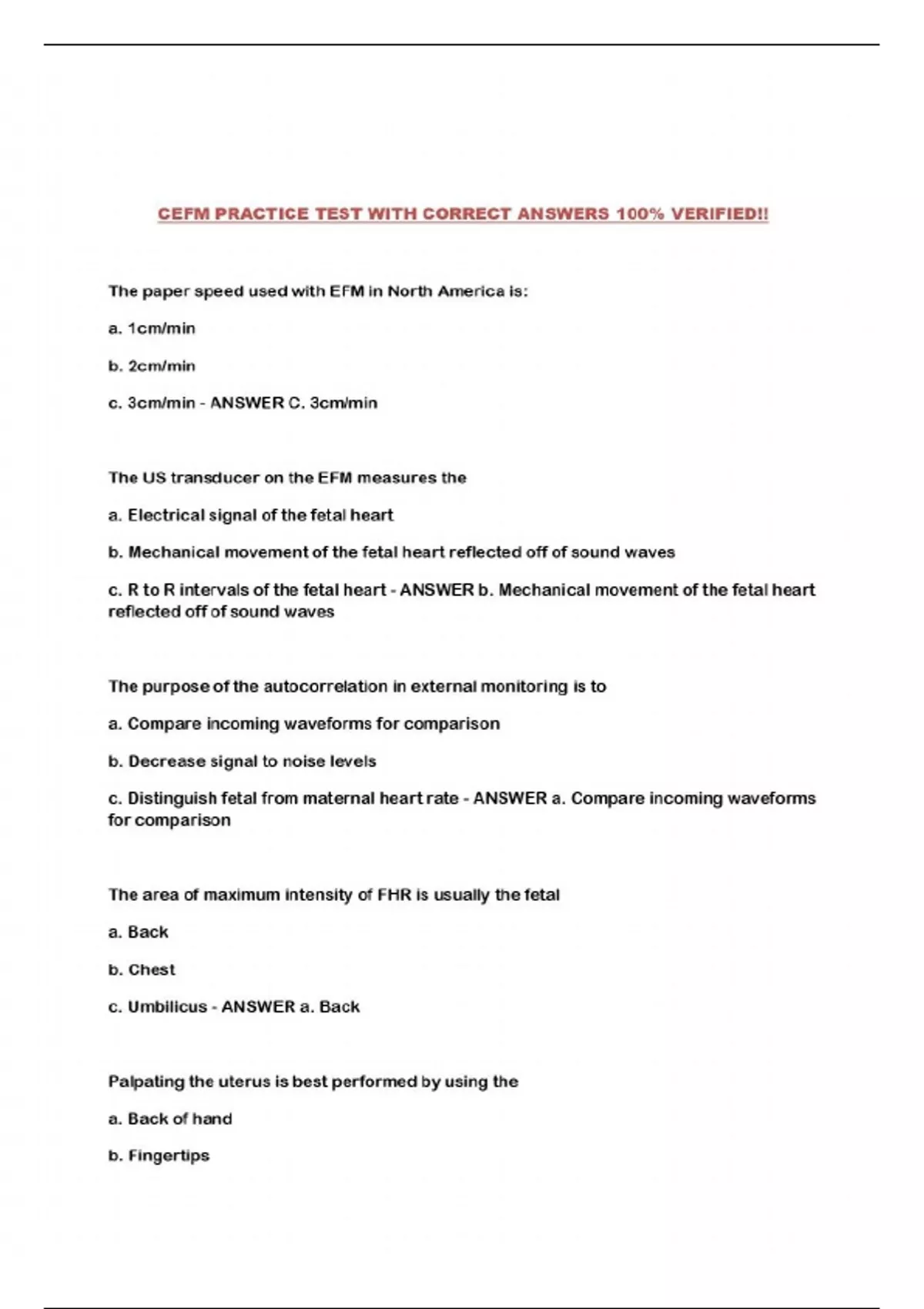 CEFM PRACTICE TEST WITH CORRECT ANSWERS 100% VERIFIED!!...