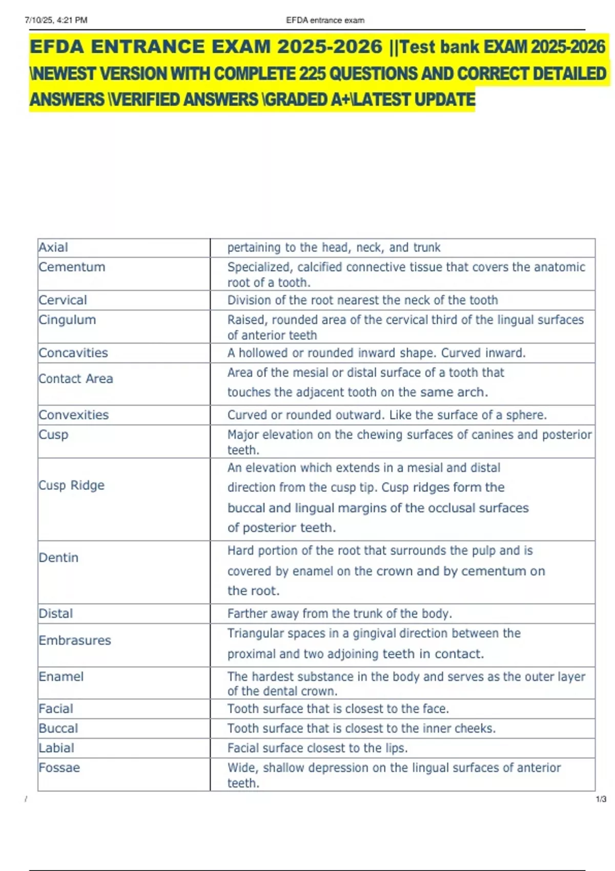 EFDA ENTRANCE EXAM ||Test bank EXAM NEWEST VERSION WITH COMPLETE 225 QUESTIONS AND CORRECT DETAILED ANSWERS VERIFIED ANSWERS GRADED A+LATEST UPDATE EFDA ENTRANCE EXAM ||Test bank EXAM NEWEST VERSION WITH COMPLETE 225 QUESTIONS AND CORRECT DETAILED ANSWERS VERIFIED ANSWERS GRADED A+LATEST UPDATE EFDA ENTRANCE EXAM ||Test bank EXAM NEWEST VERSION WITH COMPLETE 225 QUESTIONS AND CORRECT DETAILED ANSWERS VERIFIED ANSWERS GRADED A+LATEST UPDATE EFDA ENTRANCE EXAM ||Test bank EXAM NEWEST VERSION WITH COMPLETE 225 QUESTIONS AND CORRECT DETAILED ANSWERS VERIFIED ANSWERS GRADED A+LATEST UPDATE EFDA ENTRANCE EXAM ||Test bank EXAM NEWEST VERSION WITH COMPLETE 225 QUESTIONS AND CORRECT DETAILED ANSWERS VERIFIED ANSWERS GRADED A+LATEST UPDATE EFDA ENTRANCE EXAM ||Test bank EXAM NEWEST VERSION WITH COMPLETE 225 QUESTIONS AND CORRECT DETAILED ANSWERS VERIFIED ANSWERS GRADED A+LATEST UPDATE EFDA ENTRANCE EXAM ||Test bank EXAM NEWEST VERSION WITH COMPLETE 225 QUESTIONS AND CORRECT DETAILED ANSWERS VERIFIED ANSWERS GRADED A+LATEST UPDATE EFDA ENTRANCE EXAM ||Test bank EXAM NEWEST VERSION WITH COMPLETE 225 QUESTIONS AND CORRECT DETAILED ANSWERS VERIFIED ANSWERS GRADED A+LATEST UPDATE EFDA ENTRANCE EXAM ||Test bank EXAM NEWEST VERSION WITH COMPLETE 225 QUESTIONS AND CORRECT DETAILED ANSWERS VERIFIED ANSWERS GRADED A+LATEST UPDATE EFDA ENTRANCE EXAM ||Test bank EXAM NEWEST VERSION WITH COMPLETE 225 QUESTIONS AND CORRECT DETAILED ANSWERS VERIFIED ANSWERS GRADED A+LATEST UPDATE EFDA ENTRANCE EXAM ||Test bank EXAM NEWEST VERSION WITH COMPLETE 225 QUESTIONS AND CORRECT DETAILED ANSWERS VERIFIED ANSWERS GRADED A+LATEST UPDATE