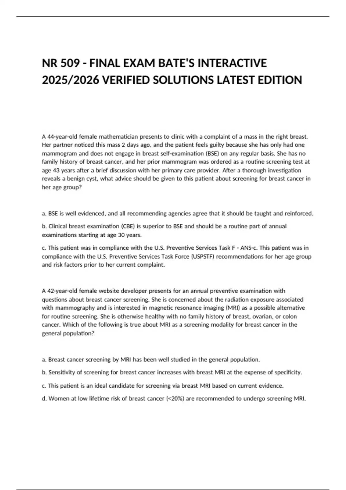 NR 509 - FINAL EXAM BATE'S INTERACTIVE