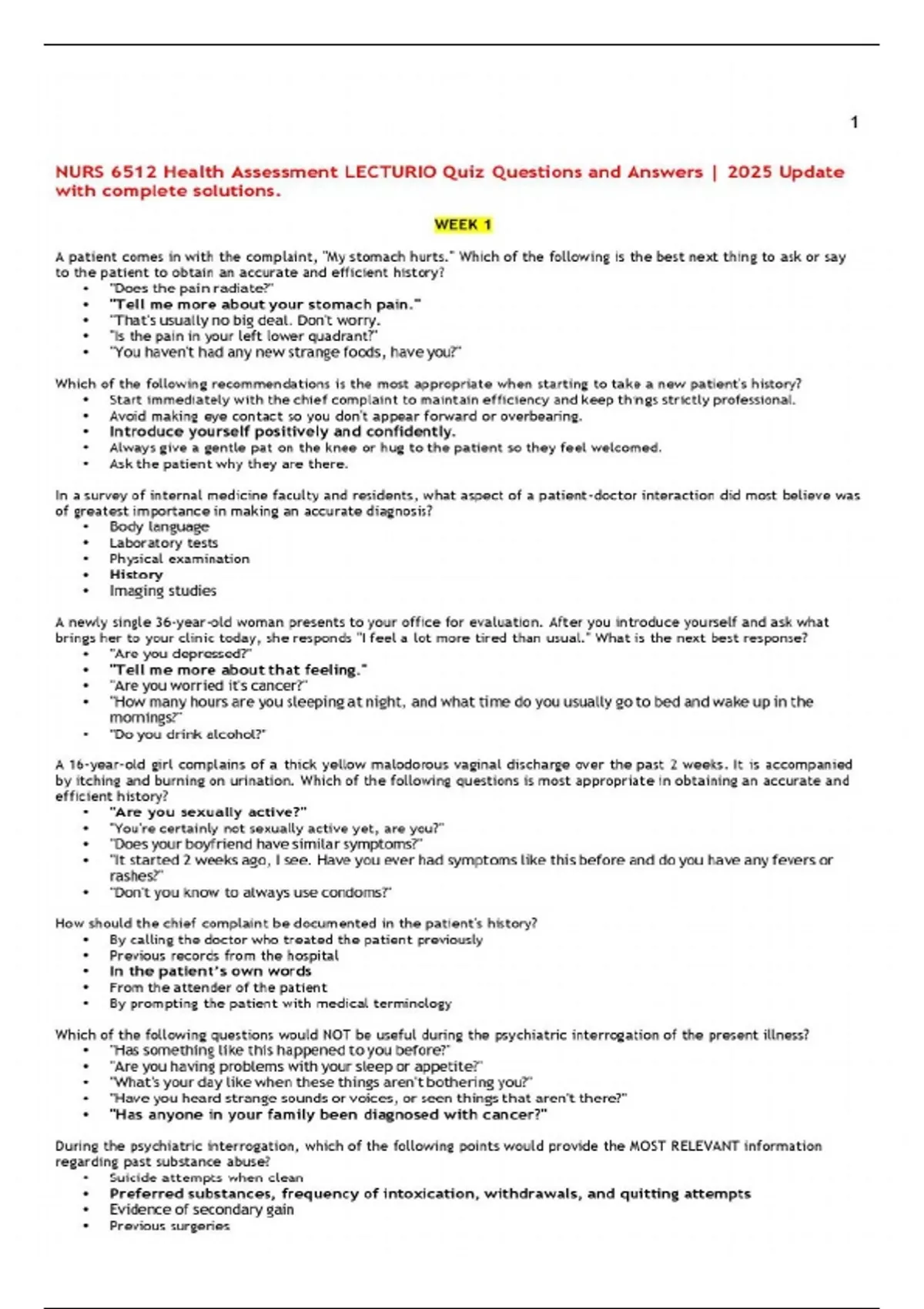 NURS 6512 Health Assessment LECTURIO Quiz Questions and Answers | 2025 Update with complete solutions.