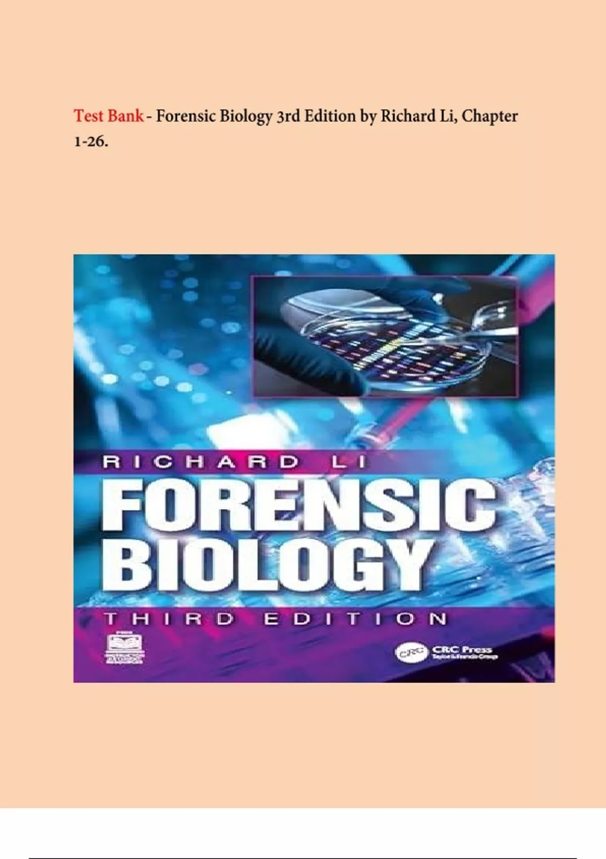 Test Bank - Forensic Biology 3rd Edition by Richard Li, Chapter 1-26
