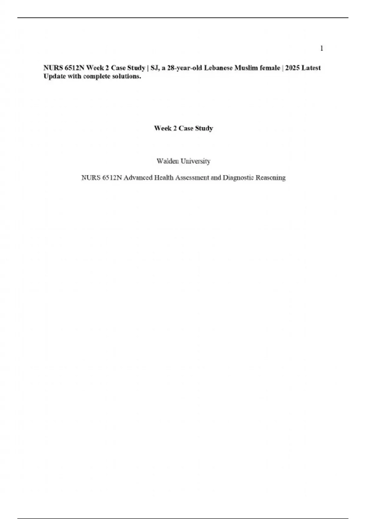 NURS 6512N Week 2 Case Study | SJ, a 28-year-old Lebanese Muslim female | 2025 Latest Update with complete solutions.