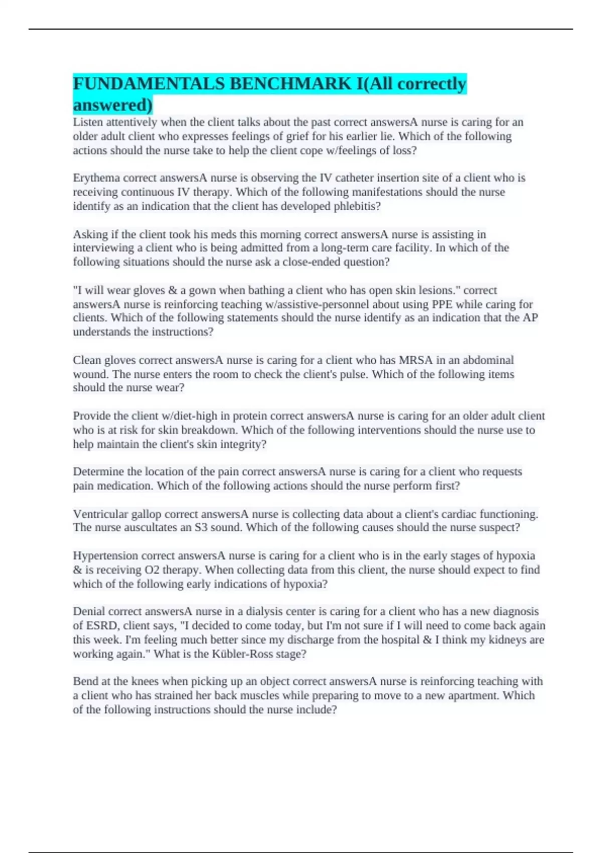 Denial correct answersA nurse in a dialysis center is caring for a client who has a new diagnosis