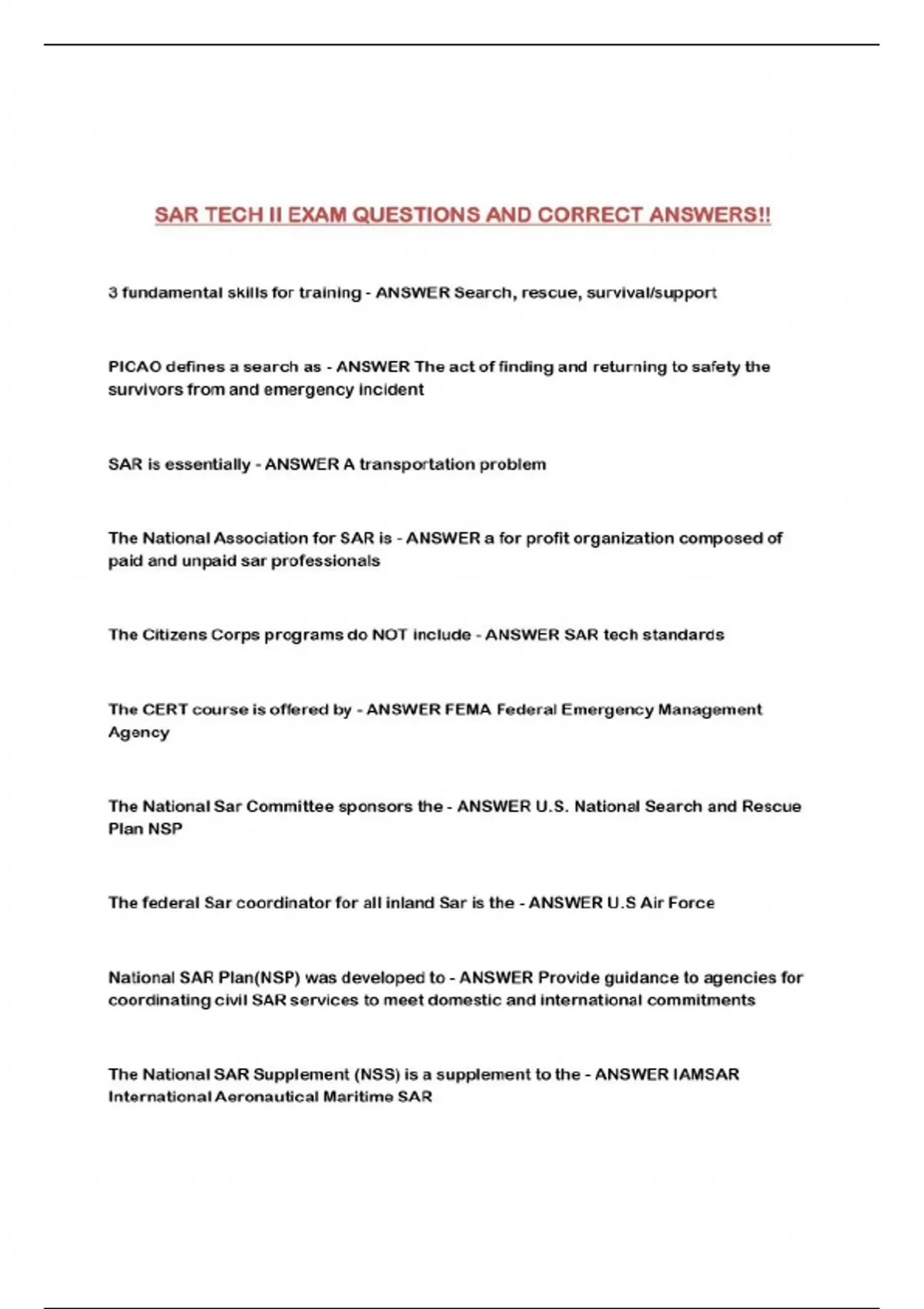 SAR TECH II EXAM QUESTIONS AND CORRECT ANSWERS!!