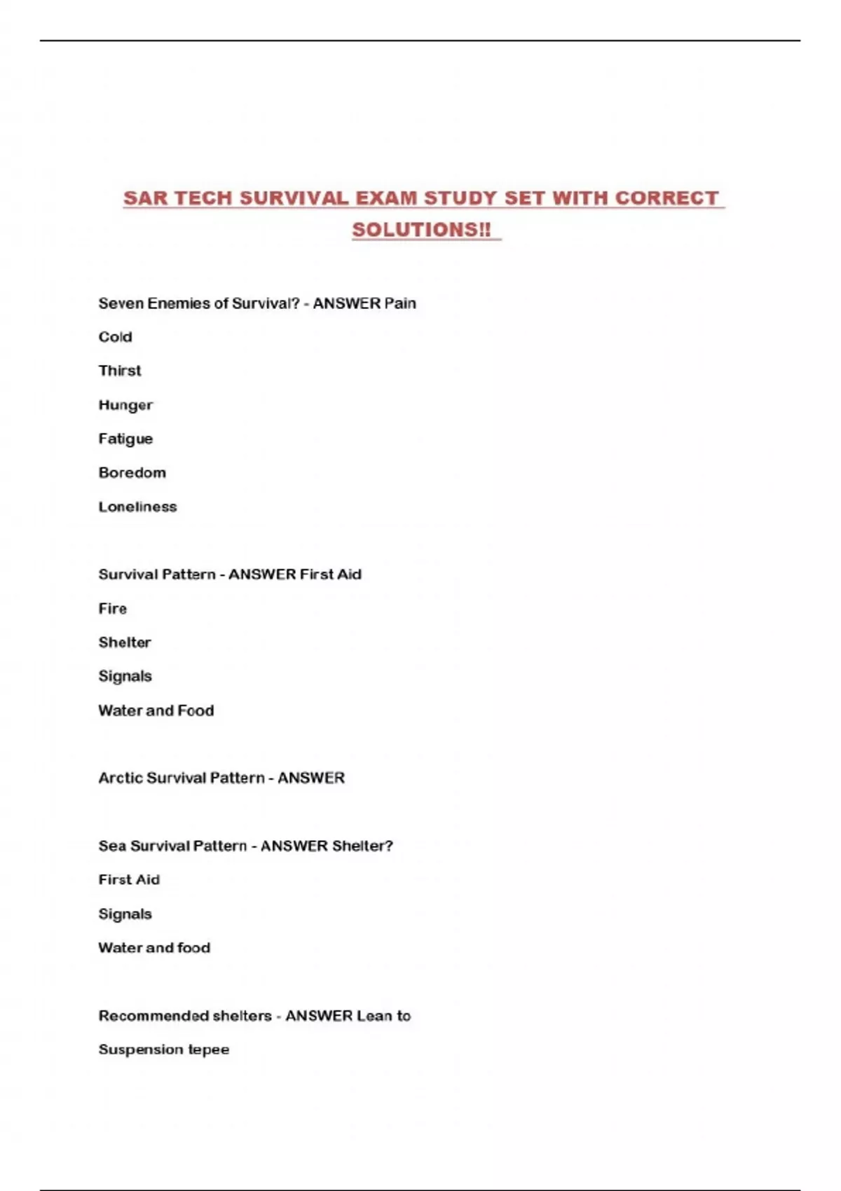 SAR TECH SURVIVAL EXAM STUDY SET WITH CORRECT SOLUTIONS!!...