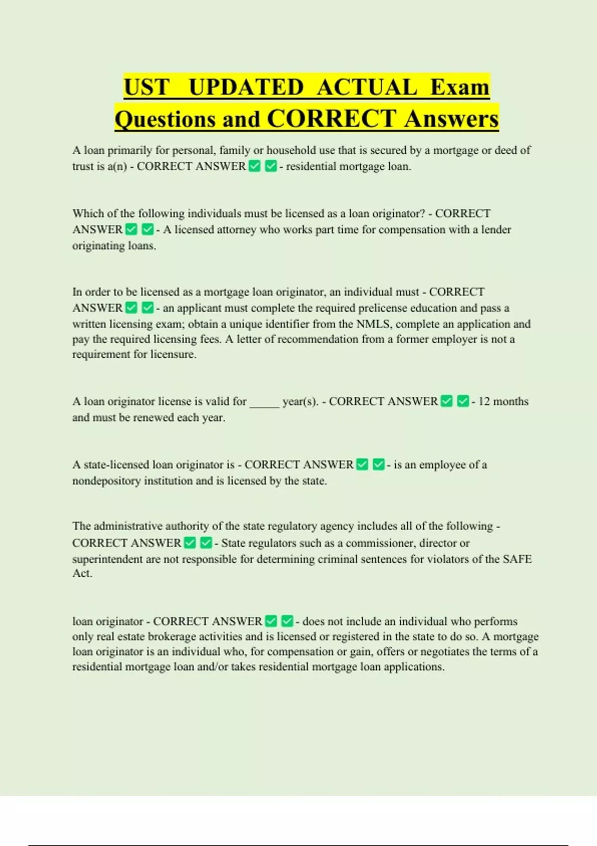 licensure? - CORRECT ANSWER - a mortgage loan originator must complete at least 20