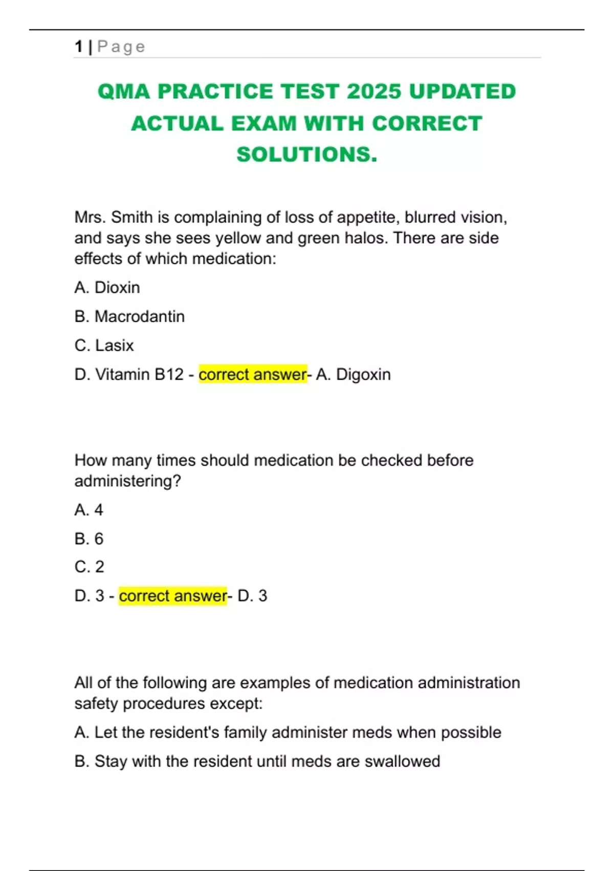 QMA PRACTICE TEST 2025 UPDATED ACTUAL EXAM WITH CORRECT SOLUTIONS.