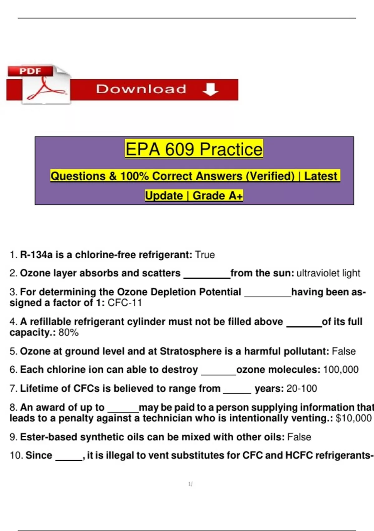 1. R-134a is a chlorine-free refrigerant: True