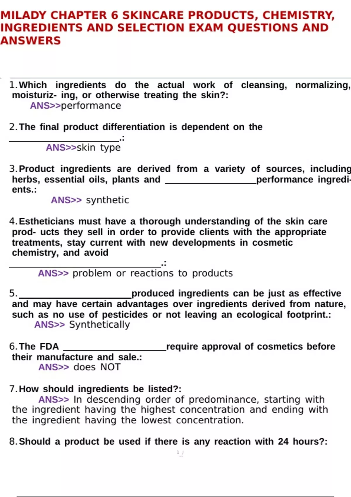 ,MILADY CHAPTER 6 SKINCARE PRODUCTS, CHEMISTRY,