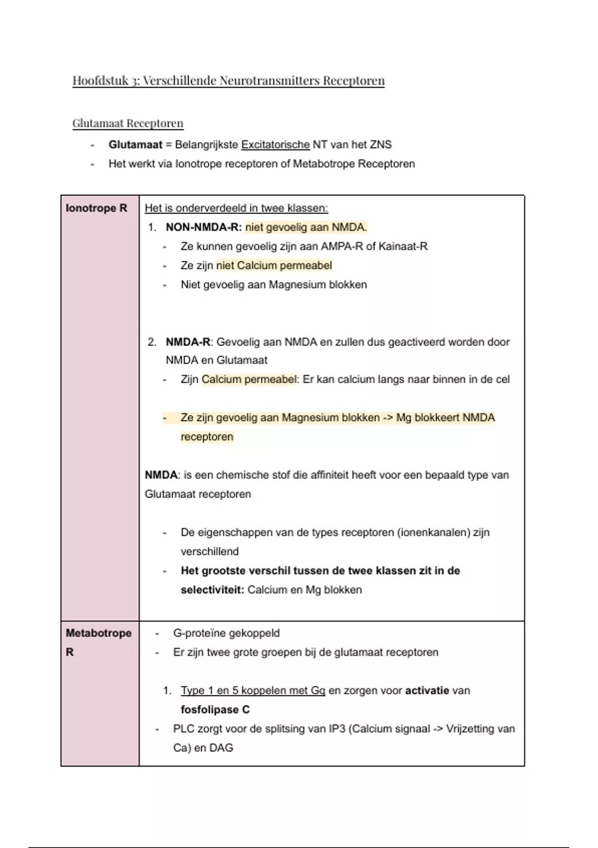 Hoofdstuk 3: Verschillende Neurotransmitters Receptoren
